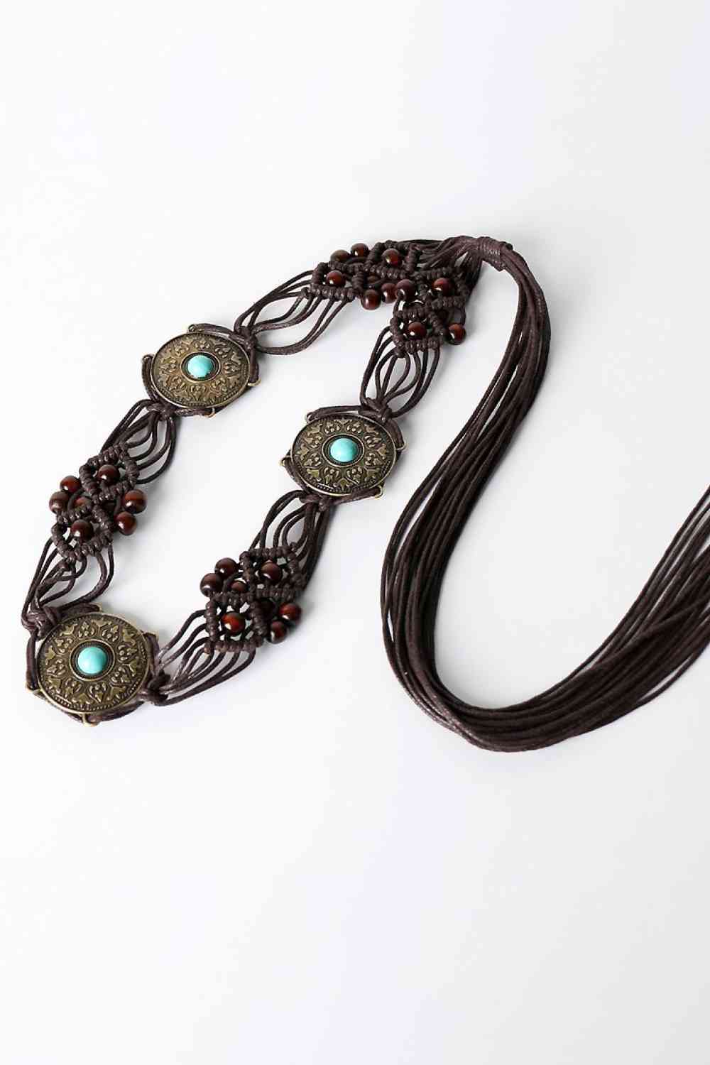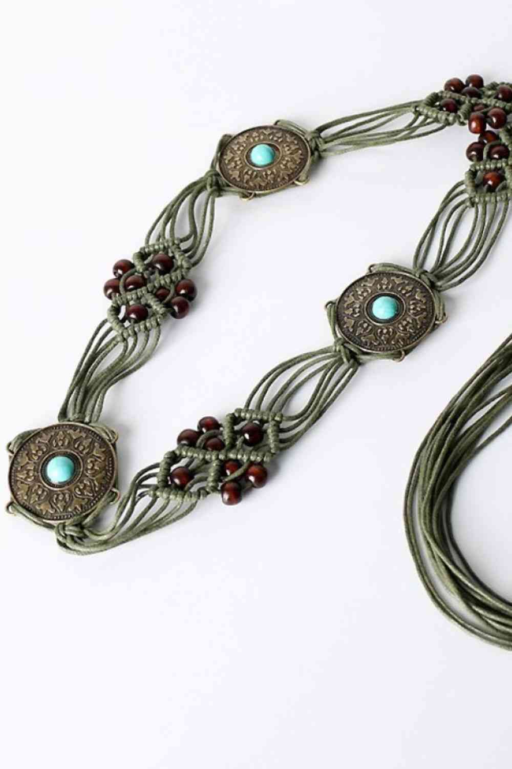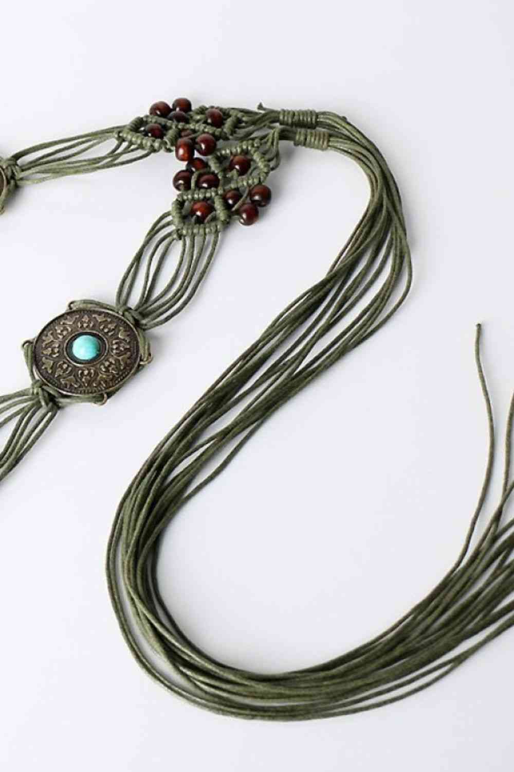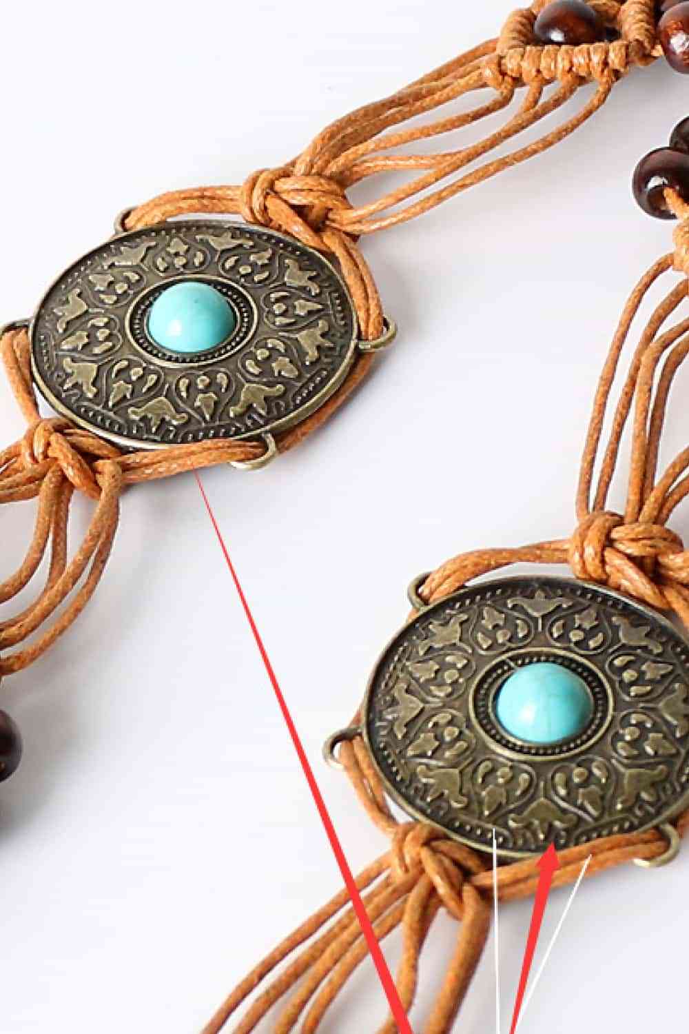 Material: Cotton rope, wooden beads, alloy imitation gemstones