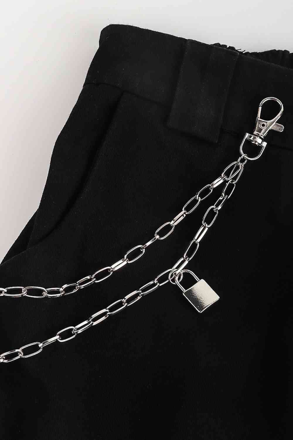 Double Layered Iron Chain Belt with Lock Charm