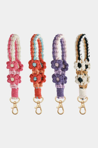 Flower Shape Wristlet Zinc Alloy Closure Macrame Key Chain