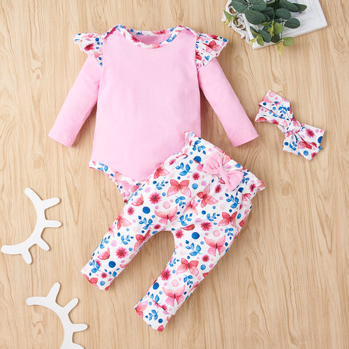 Baby Girl Bodysuit and Floral Paperbag Pants Set with Bow
