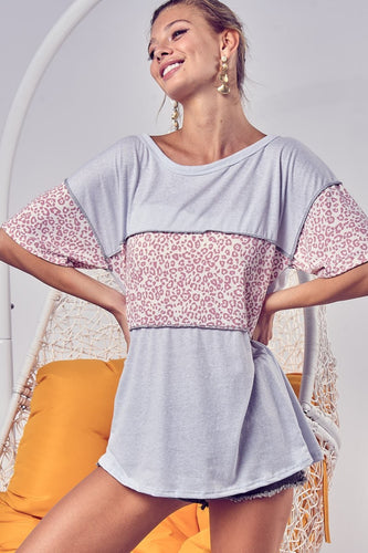 BiBi Leopard Block Exposed Seams T-Shirt