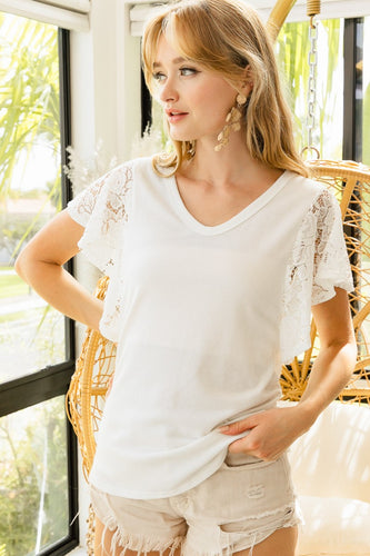 BiBi Lace Detail Ruffled V-Neck Blouse