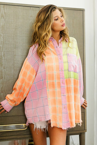 BiBi Plaid Color Block Button Up Shirt