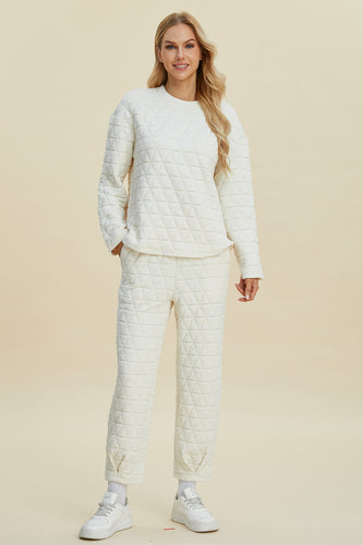 Double Take Full Size Texture Round Neck Long Sleeve Top and Pants Set