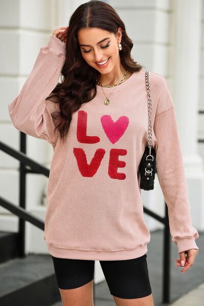LOVE Round Neck Dropped Shoulder Sweatshirt