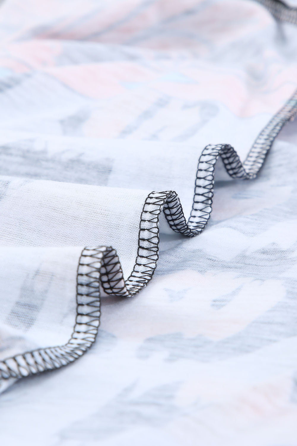 Printed Zip-Collar Short Raglan Sleeve Tee