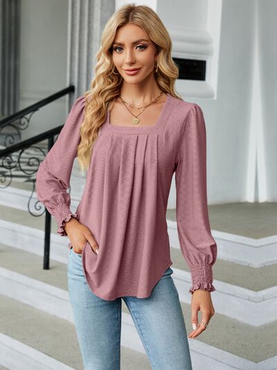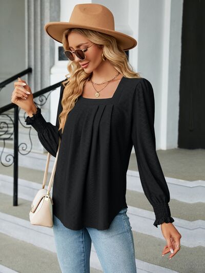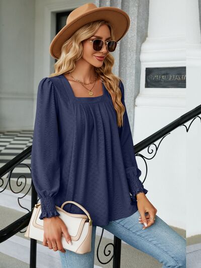 • Load image into Gallery viewer, Ruched Square Neck Lantern Sleeve Blouse