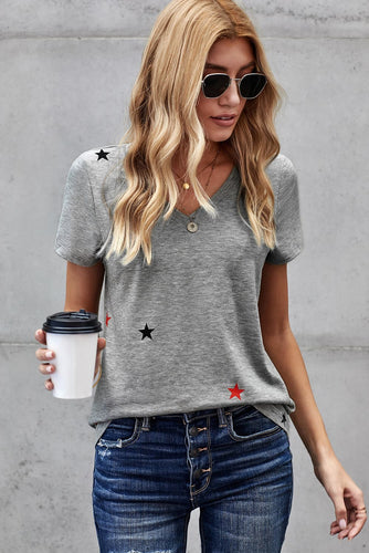 Star Print V-Neck Tee Shirt
