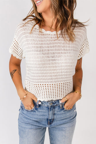 Scalloped Trim Openwork Knit Cropped Top