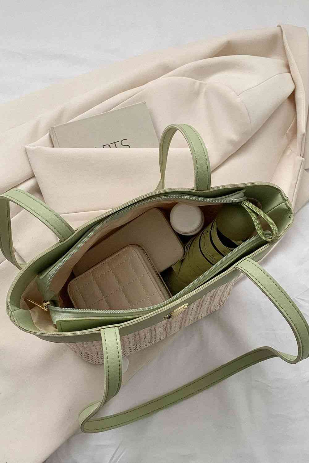 Two-Tone Straw PU Tote Bag