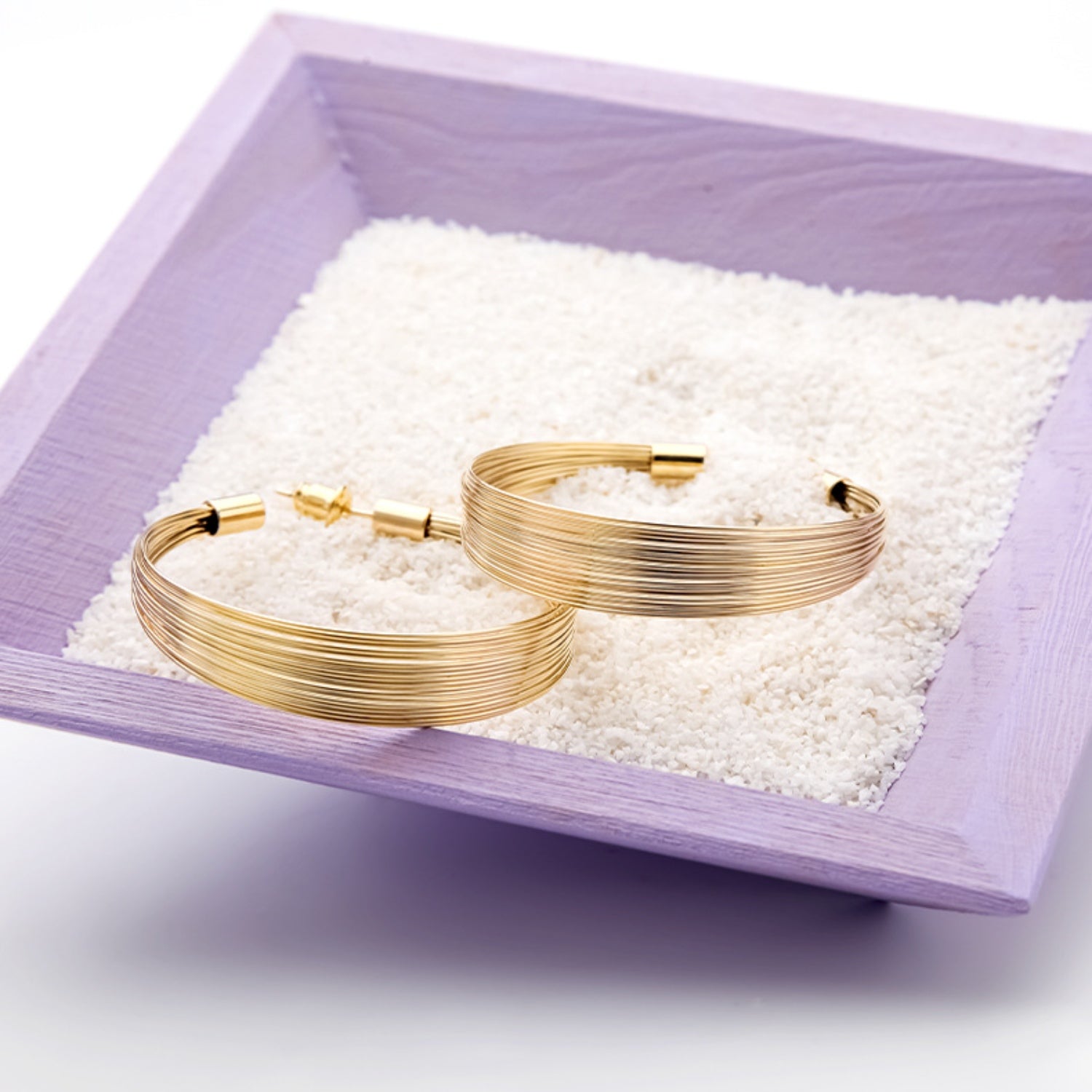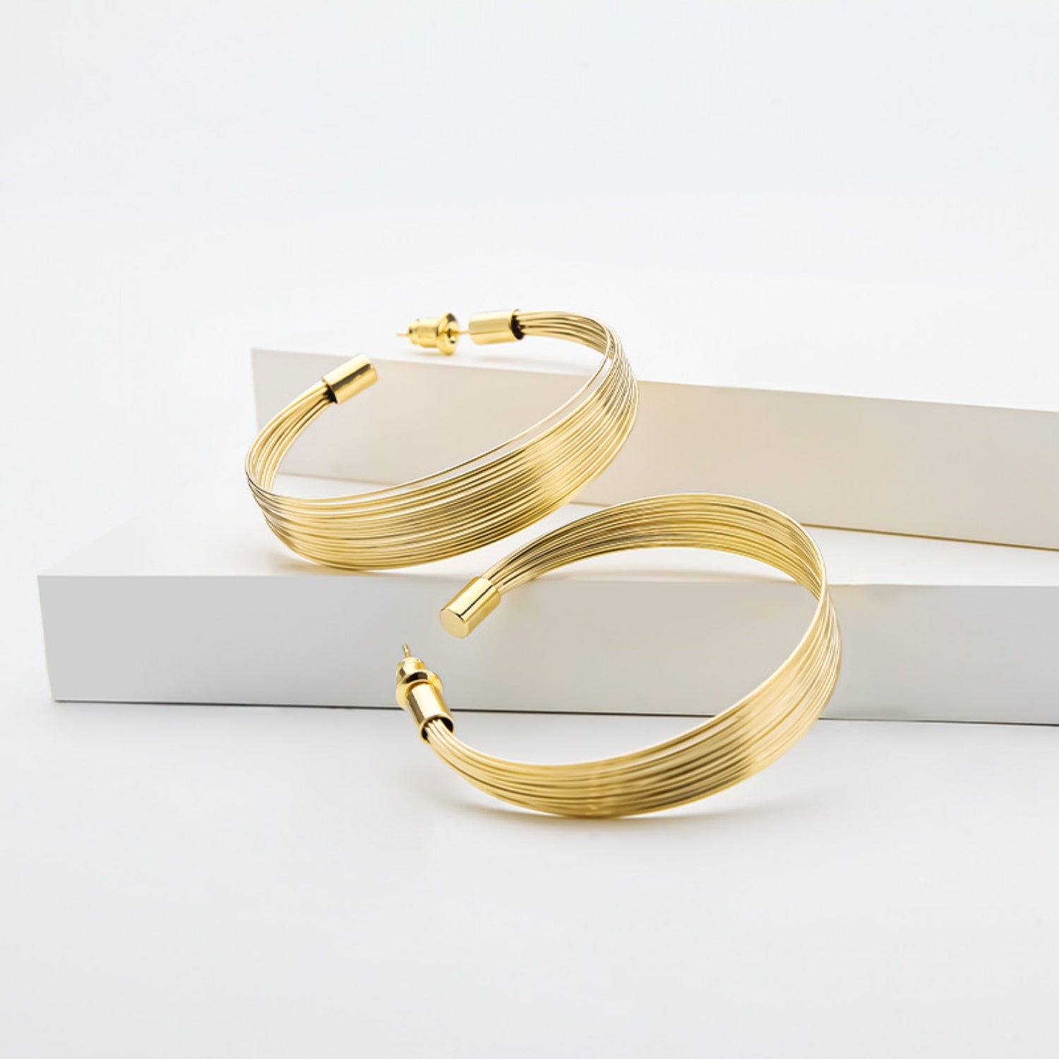 • Load image into Gallery viewer, Gold-Plated Copper Layered Hoop Earrings