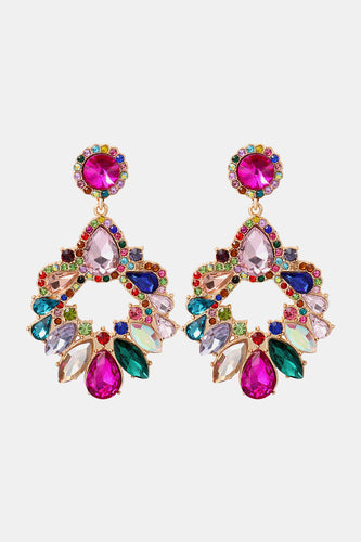 Zinc Alloy Frame Glass Stone Dangle Earrings