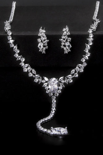 Fashionable Cubic Zirconia Necklace and Dangel Earrings Set