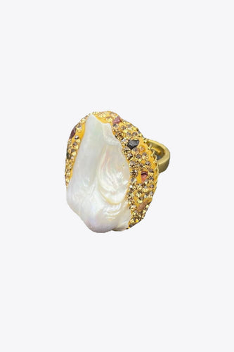 Random-Shape Natural Stone Rhinestone Brass Ring