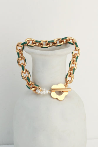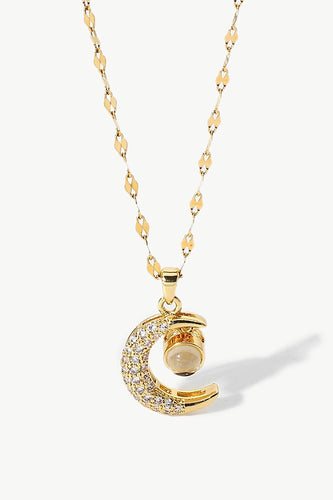 Inlaid Cubic Zirconia Moon Pendant Necklace