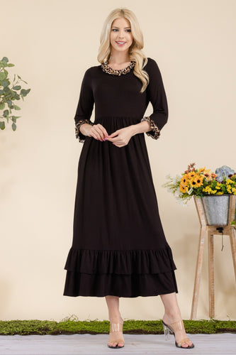 Celeste Full Size Leopard Ruffle Detail Midi Dress