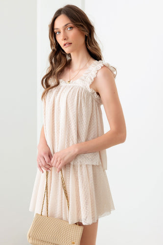 Mustard Seed Sheer Pin Dot Tank and Elastic Waist Skirt Set