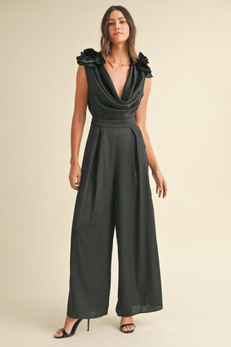 MABLE 3D Floral Applique Deep Cowl Neck Jumpsuit