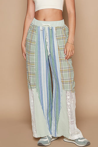POL Drawstring Plaid Print Lace Straight Pants