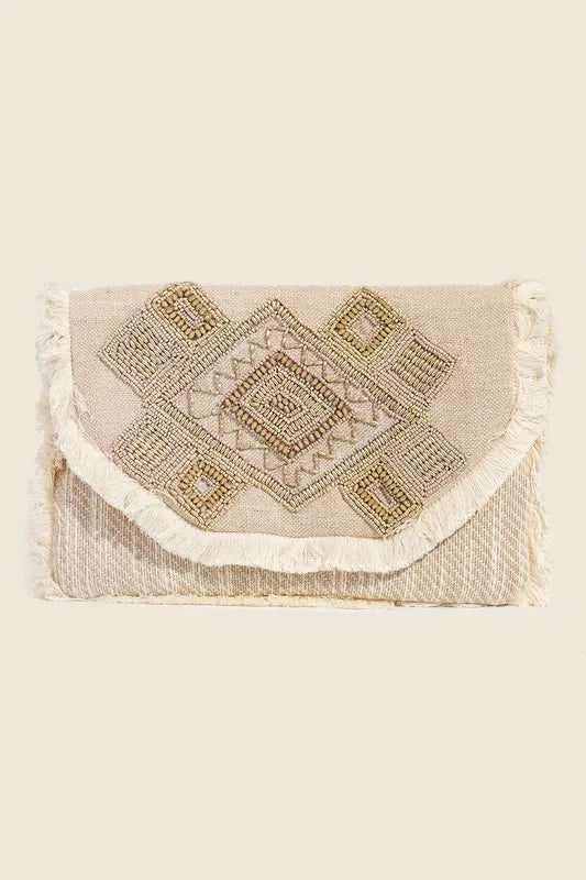 The Boho Beaded Pattern Envelope Bag is a stylish and unique accessory that adds a touch of bohemian flair to any outfit. This envelope bag features intricate beadwork in a beautiful boho-inspired pattern, making it a standout piece. Its versatile envelope design and detachable chain strap allow for effortless transitions from day to night. Perfect for adding a pop of color and texture to your look, this bag is a chic and trendy accessory for any fashion-forward individual.