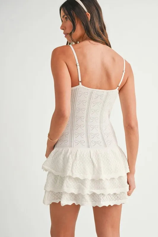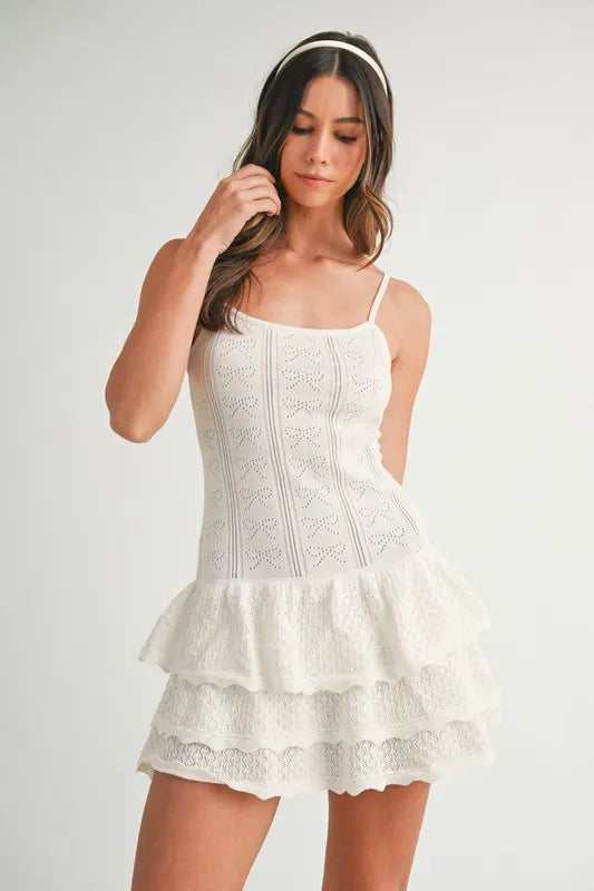 The Bow Pointelle Knit Ruffle Mini Dress is a charming and feminine dress featuring delicate bow and ruffle details in a pointelle knit fabric. This mini dress exudes a romantic and whimsical vibe, perfect for special occasions or events. The pointelle knit adds texture and visual interest, while the bow and ruffle embellishments offer a playful and elegant touch. Pair this dress with heels and dainty accessories for a lovely and stylish outfit.