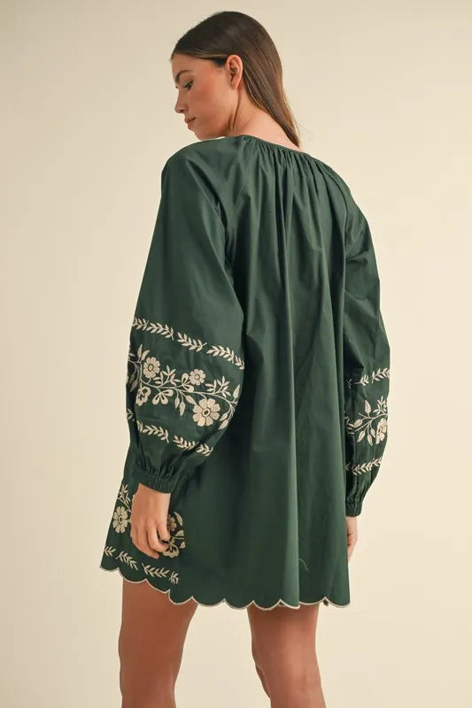 MABLE Embroidered Long Sleeve Peasant Mini Dress