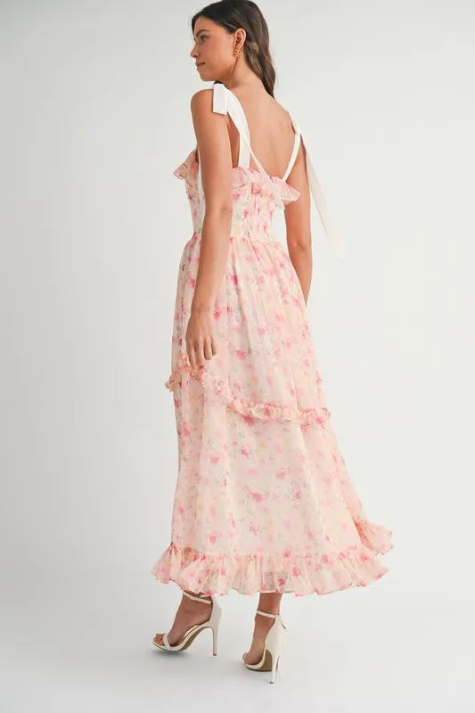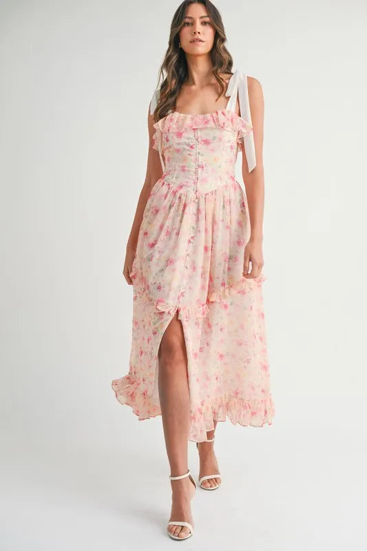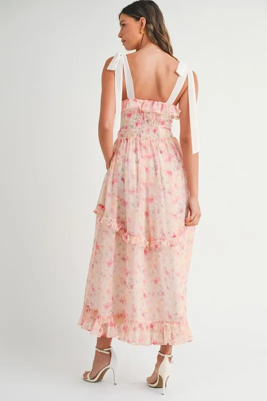 MABLE Floral Printed Shoulder Strap Midi Dress