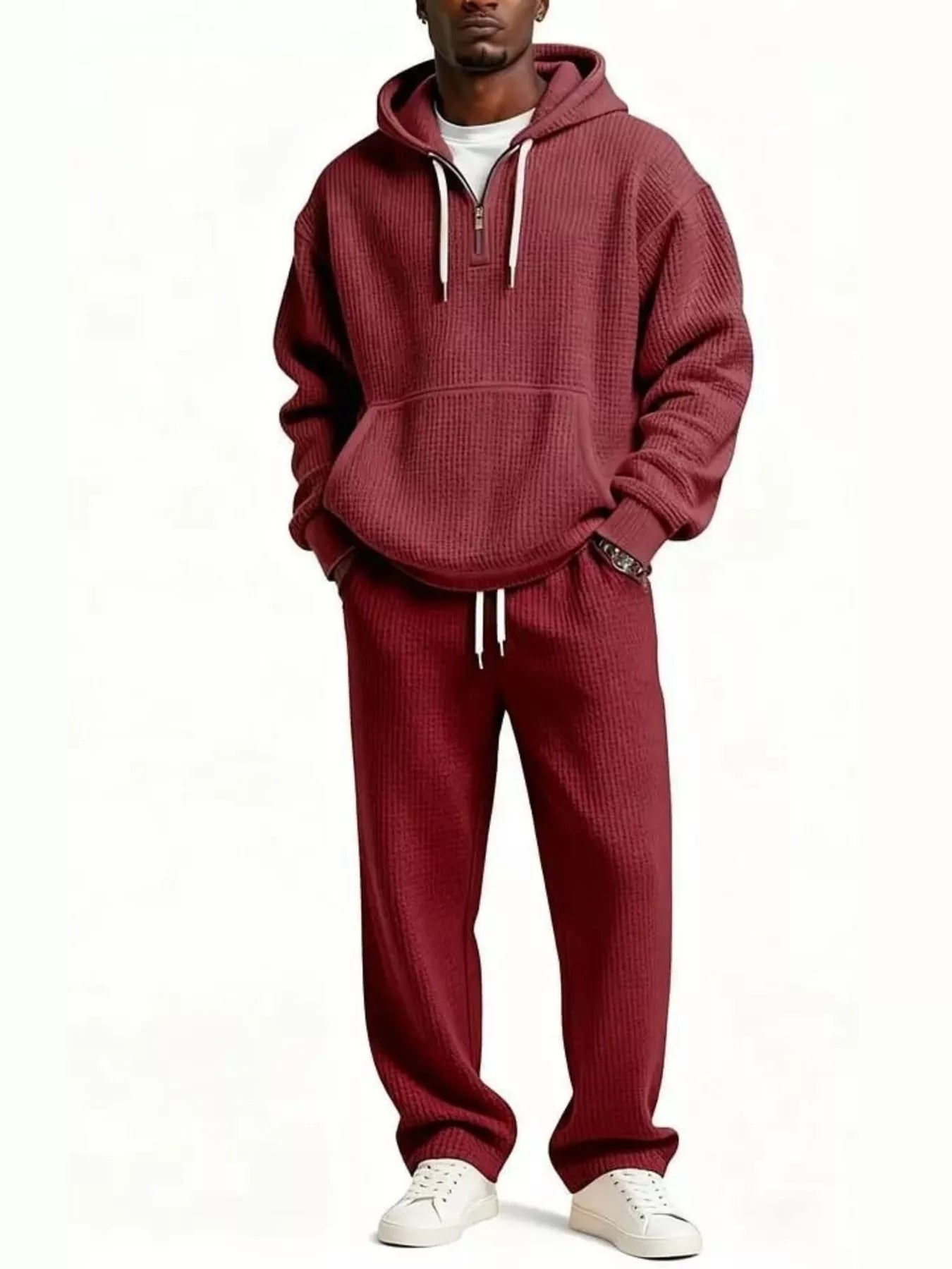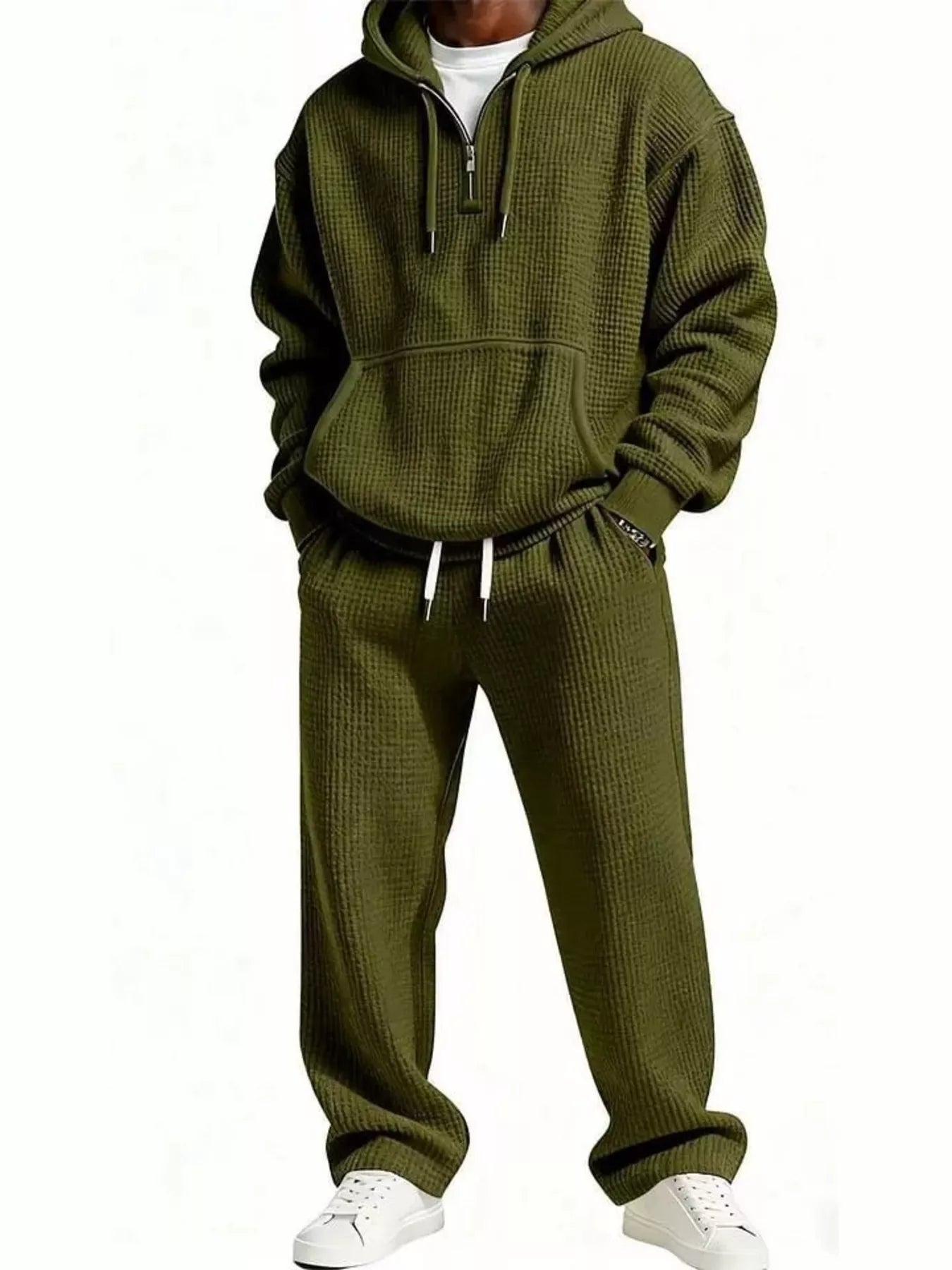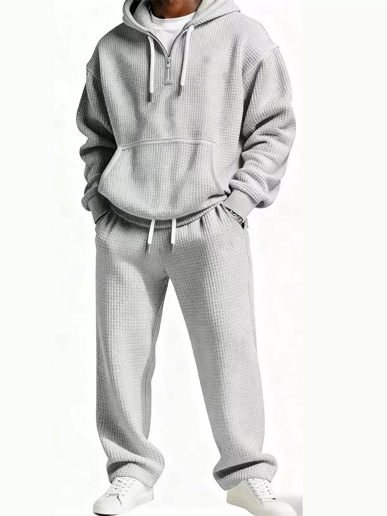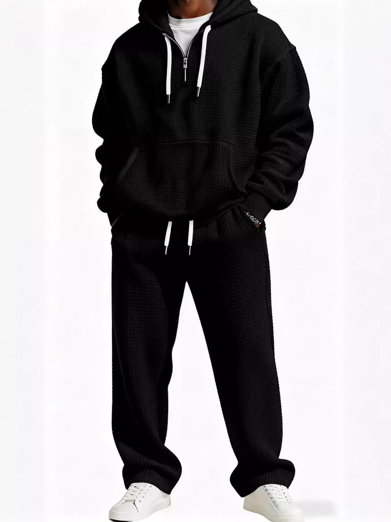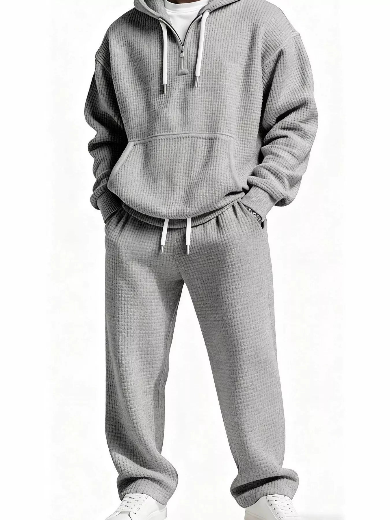 - Features:Oversized,Waffle-Knit,Drawstring,Pocketed