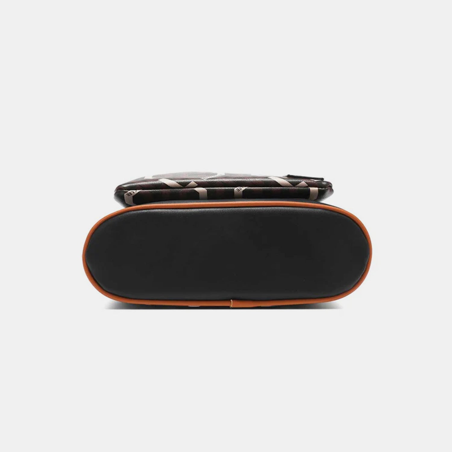 Make a modern statement with this Crossbody featuring a striking geometric design and versatile neutral colorway. The edgy exotic textured accents add a unique touch to this classic crossbody. Stay organized with its multi-zip compartments, perfect for storing your essentials securely. Elevate your look with this eye-catching accessory that seamlessly combines style and functionality. Add a touch of sophistication to any outfit with this chic crossbody bag. Stay on-trend with this must-have accessory that is sure to turn heads wherever you go.