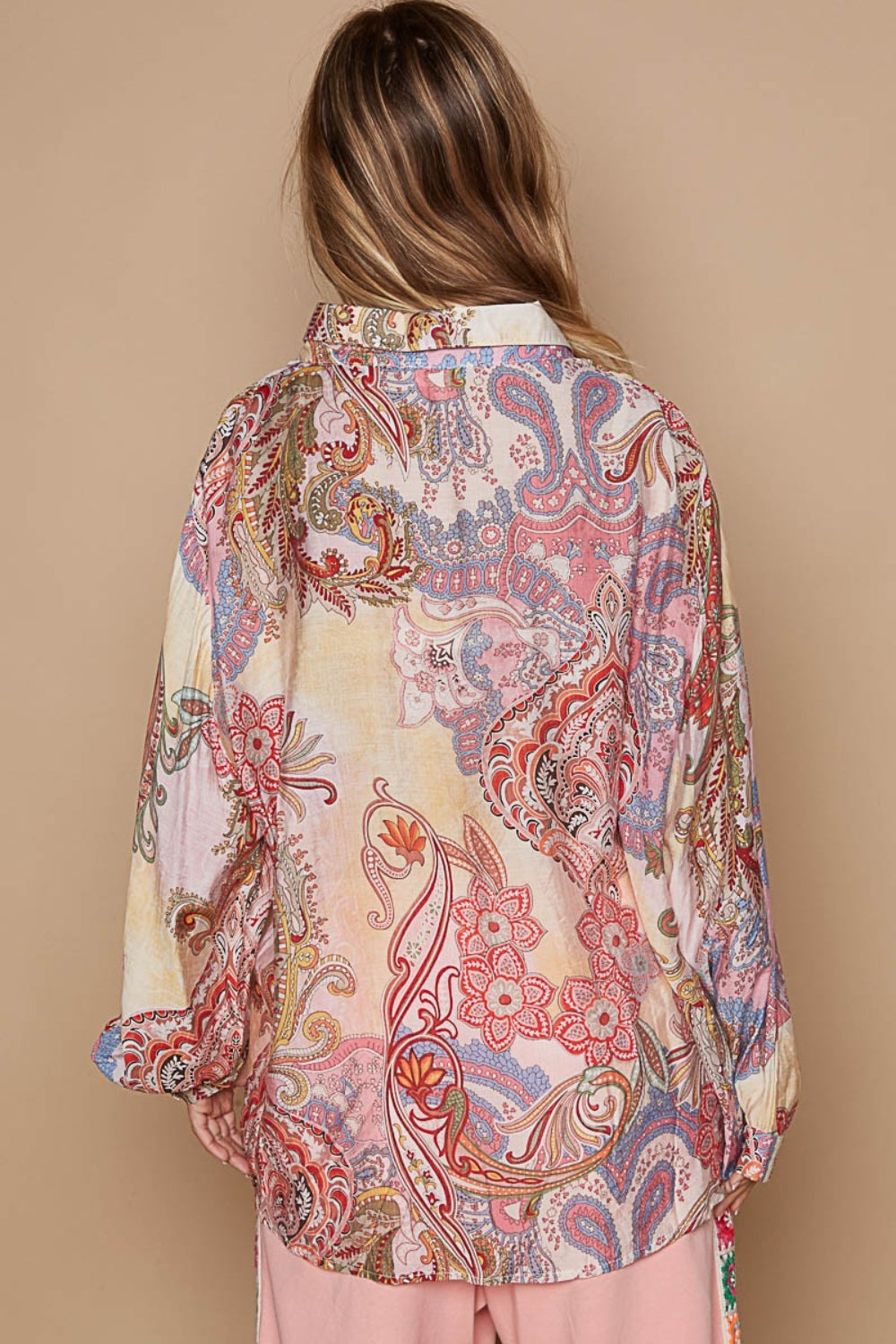 • Load image into Gallery viewer, POL Button-Down Long Sleeve Paisley Print Shirt