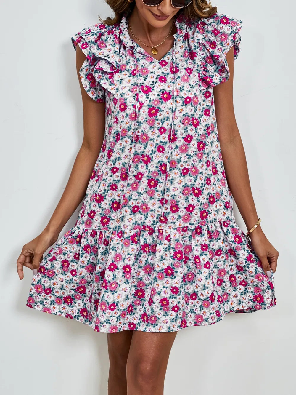 Tied Floral Cap Sleeve Mini Dress