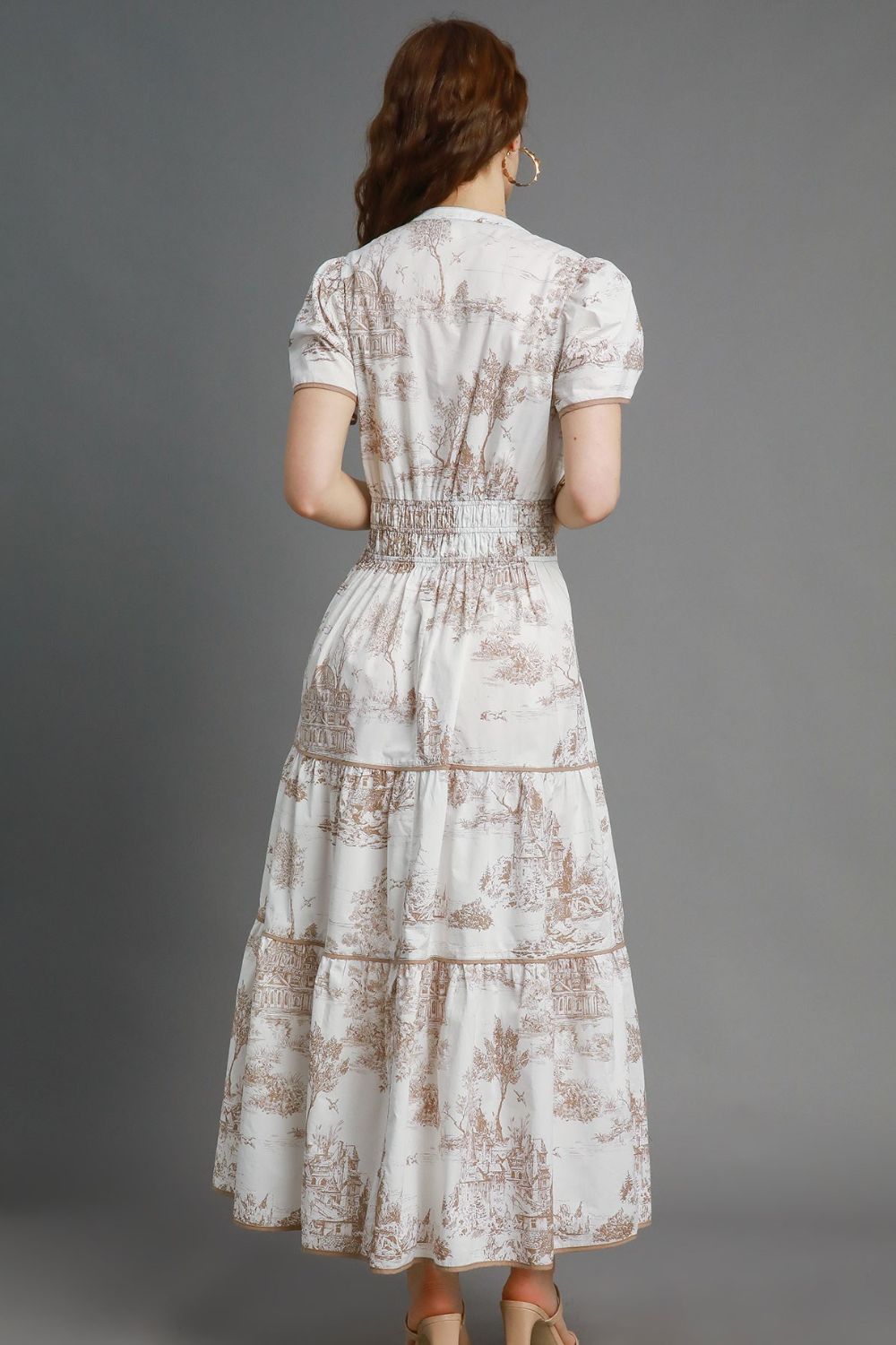 Umgee Full Size Landscape Print Short Sleeve Tiered Maxi Dress Plus Size