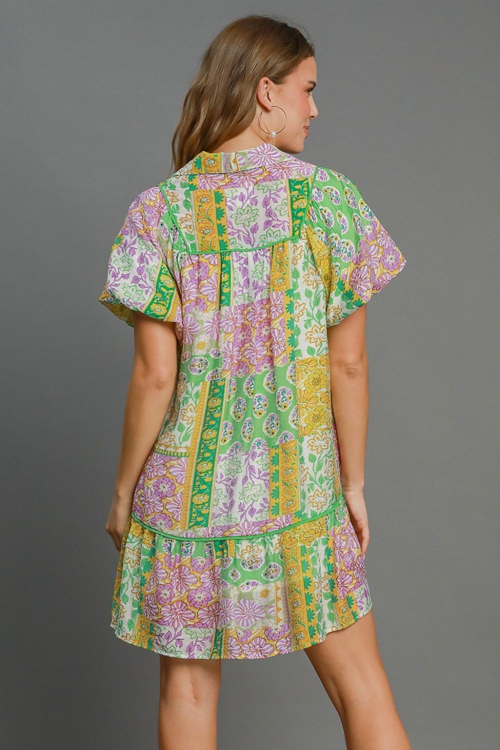 Umgee Full Size Smocked Floral Puff Sleeve Mini Dress Plus Size