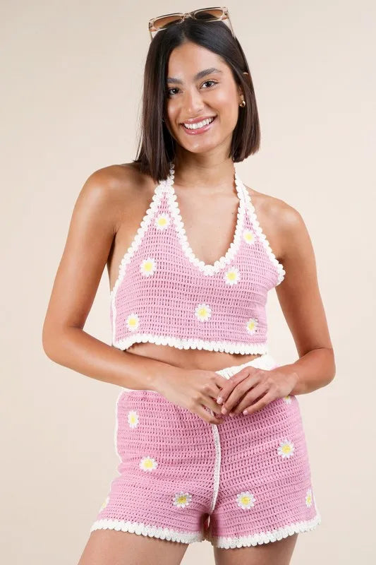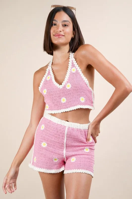 The Floral Crochet Top and Shorts Set is a charming and feminine ensemble that exudes bohemian flair. The crochet detailing adds a delicate and intricate touch to both the top and shorts. With a matching floral print, this set offers a cohesive and stylish look. Perfect for warm weather, this set is ideal for casual outings or beach days. Pair it with sandals or espadrilles for a relaxed and chic summer outfit. This set is a versatile and on-trend choice for a cute and coordinated look.