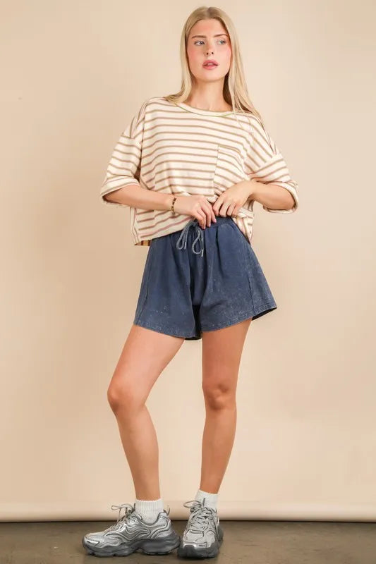 Mineral washed comfy baggy shorts are a relaxed and comfortable style of shorts that have been treated with a special washing technique called mineral washing. This process gives the fabric a vintage or worn-in look, along with a soft and comfortable feel. The baggy fit of these shorts adds to the comfort level and allows for easy movement. Mineral washed comfy baggy shorts are perfect for casual wear and lounging, providing a relaxed and stylish option for your wardrobe.