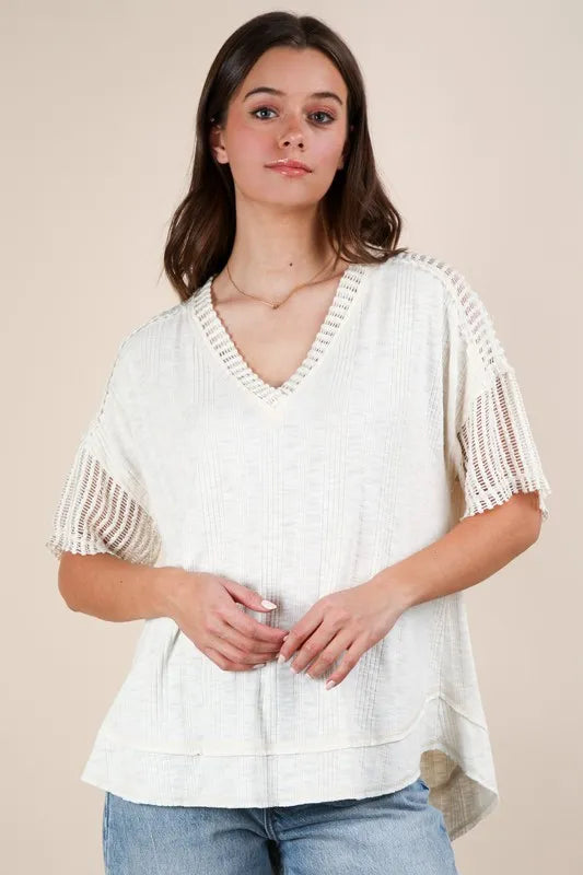 VERY J Oversized Contrast Knit Comfy Casual Top
