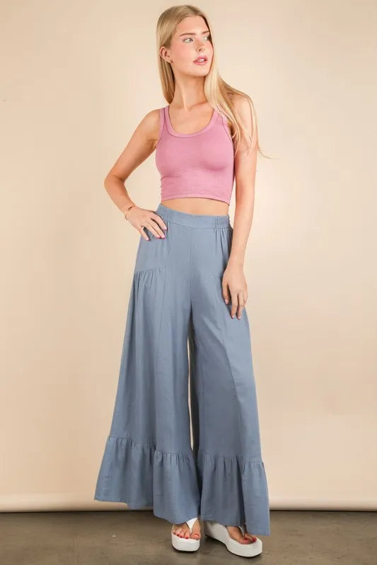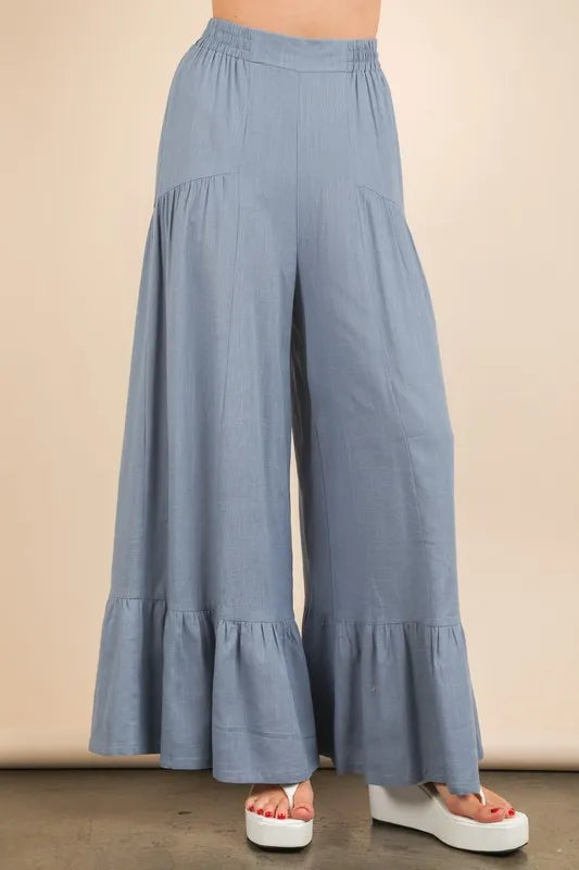 The Palazzo Elastic Waist Comfy Pants feature a wide-leg silhouette and an elastic waistband for ultimate comfort. These pants are perfect for relaxed and casual wear, offering a chic and easy-to-wear style. The palazzo design adds a touch of sophistication to your outfit while ensuring a comfortable fit all day long.