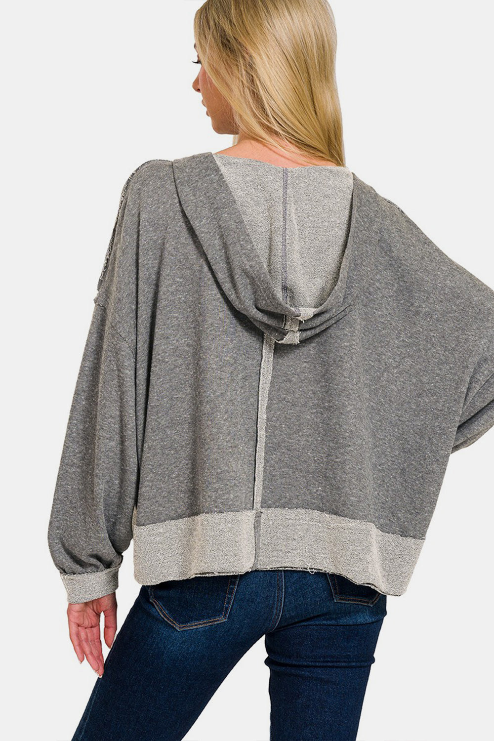Zenana Contrast Trim Slit Hoodie