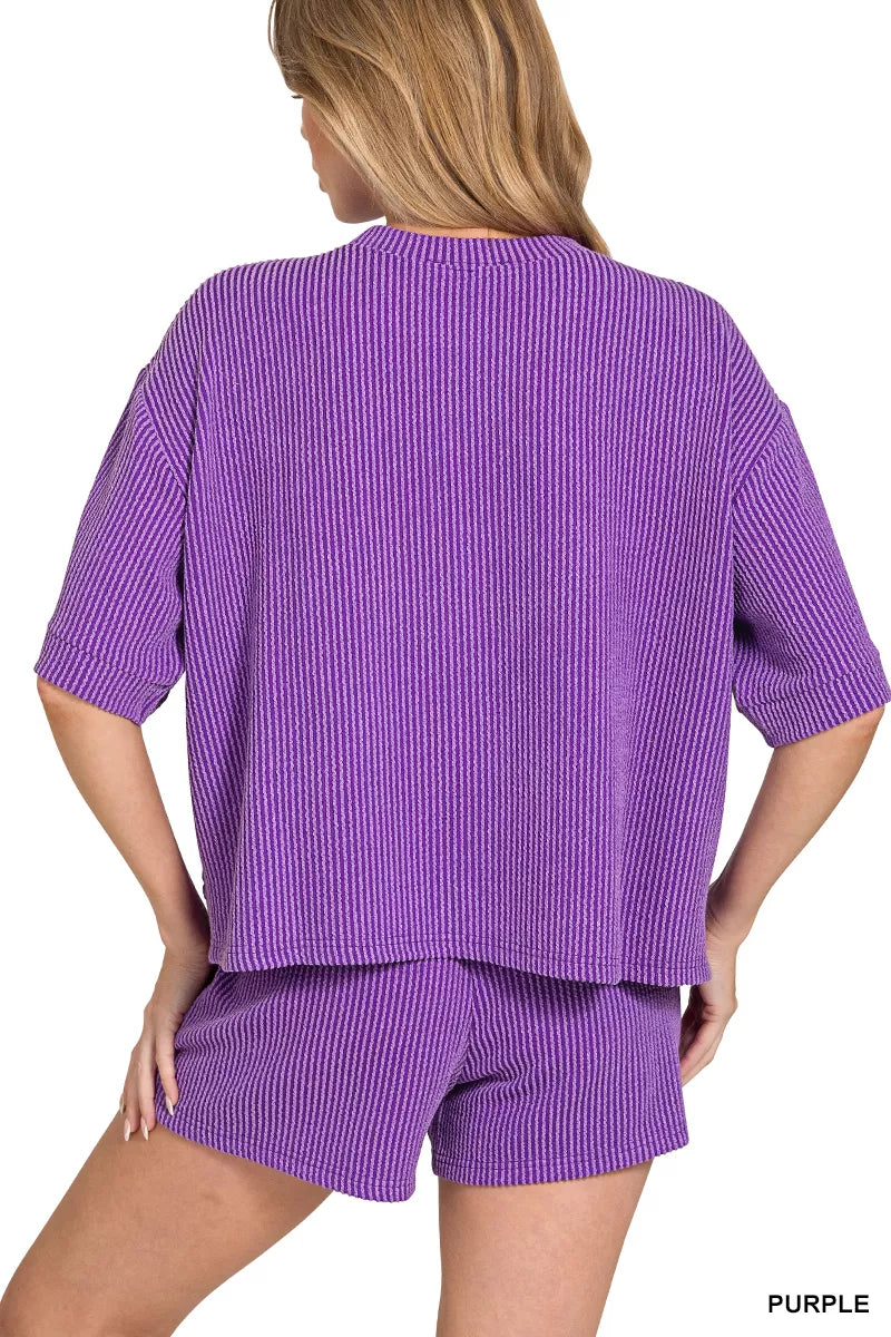 Zenana Raised Rib Short Sleeve Tee and Drawstring Shorts Set