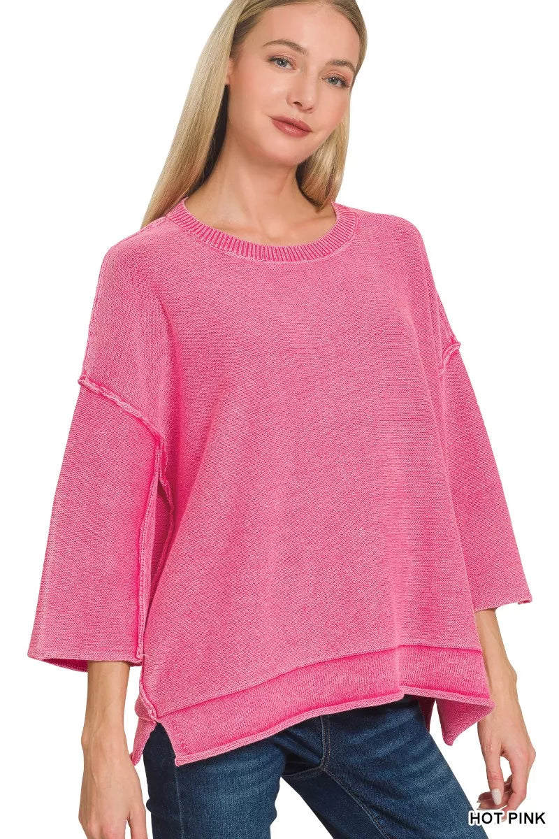 The Washed 3/4 Sleeve Boxy Sweater is a cozy and chic addition to your wardrobe. With its relaxed fit and boxy silhouette, this sweater exudes effortless style. The washed finish gives it a laid-back and casual vibe, perfect for everyday wear. The 3/4 sleeves add a touch of sophistication and versatility to the design. Stay comfortable and on-trend with this versatile sweater that can be easily dressed up or down for any occasion.