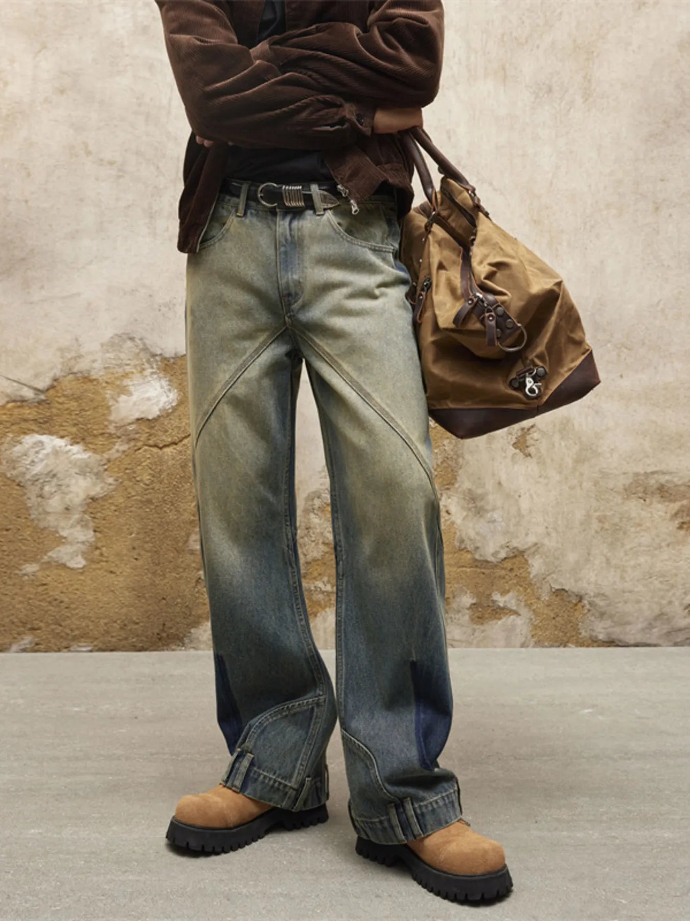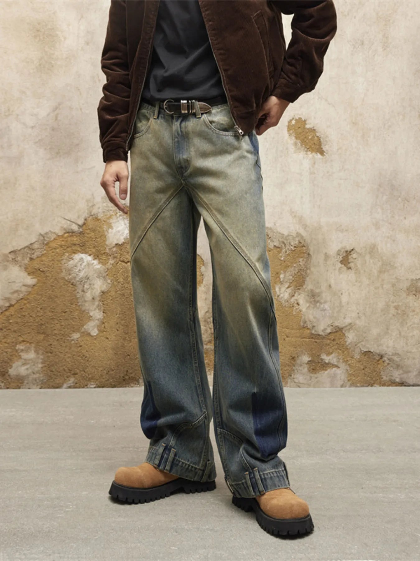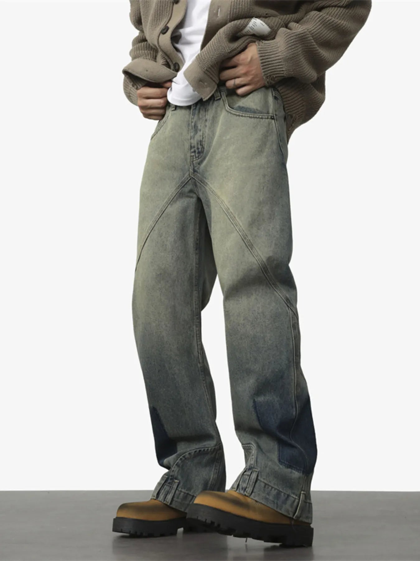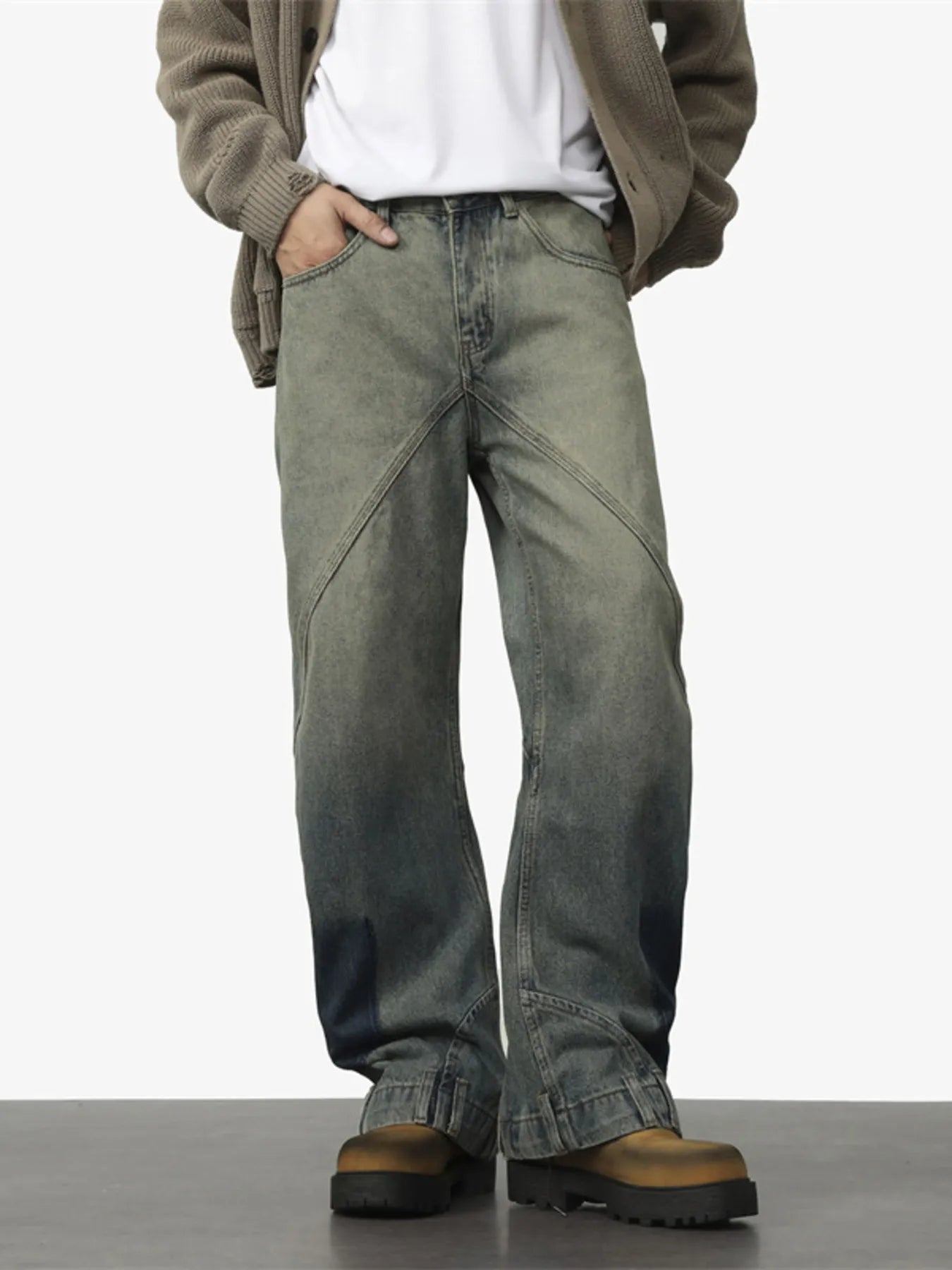 Men's Washed Wide Leg Relaxed Fit Jeans