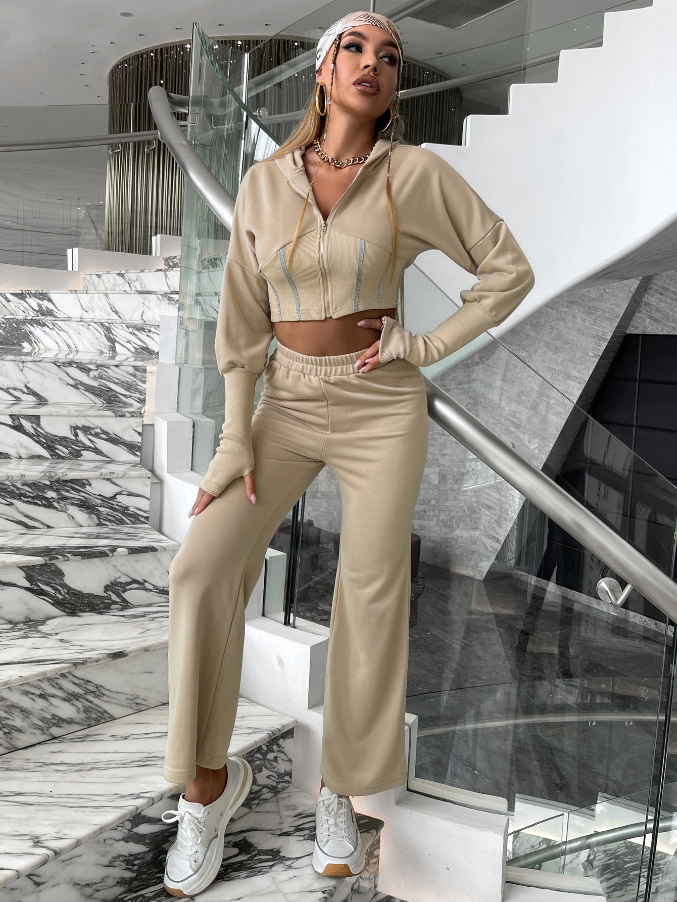 - Features: Zip up, cropped, spliced, ribbed, dropped shoulders, thumbholes