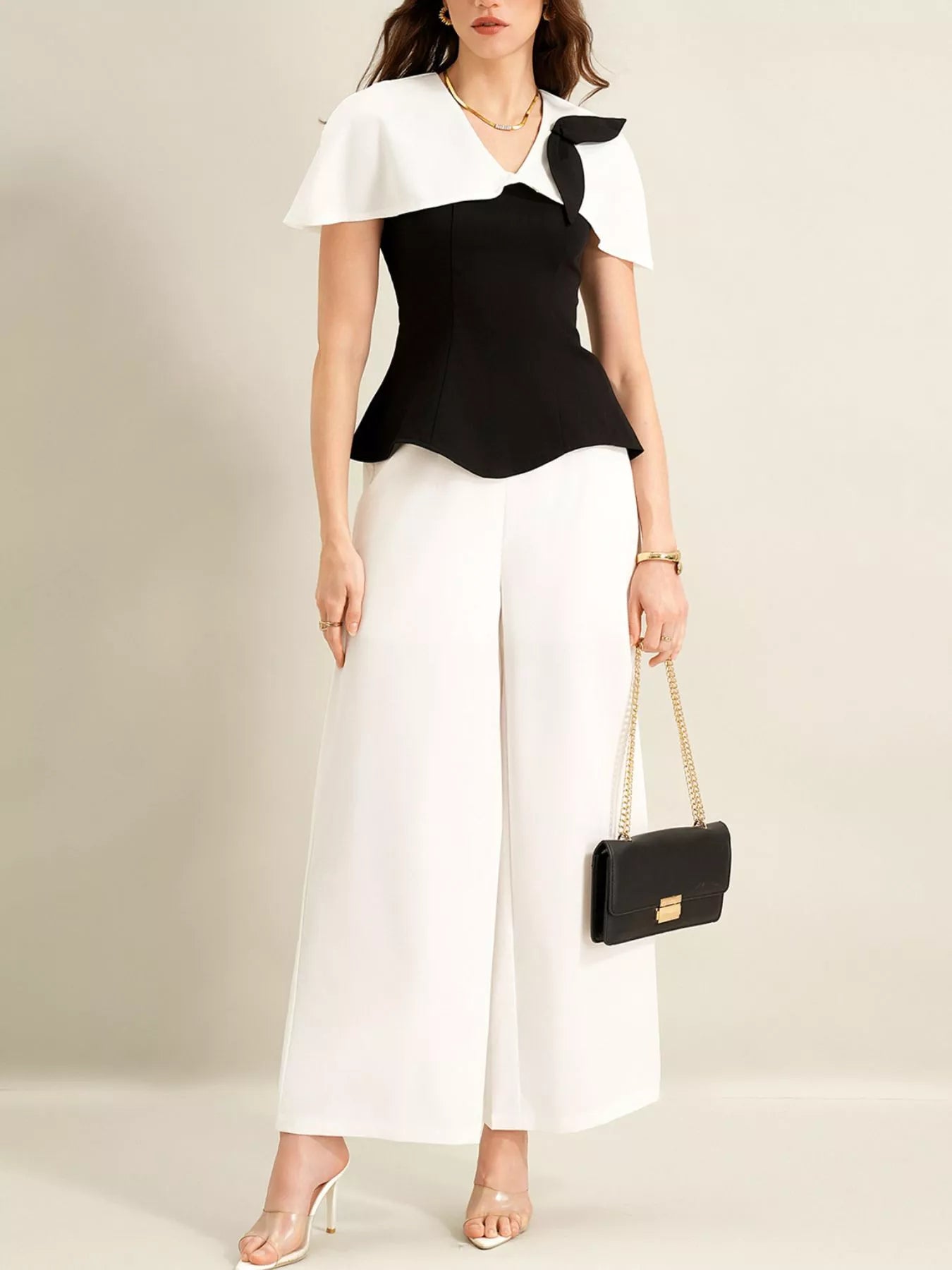 Peplum Top with Wide-Leg Pants Set