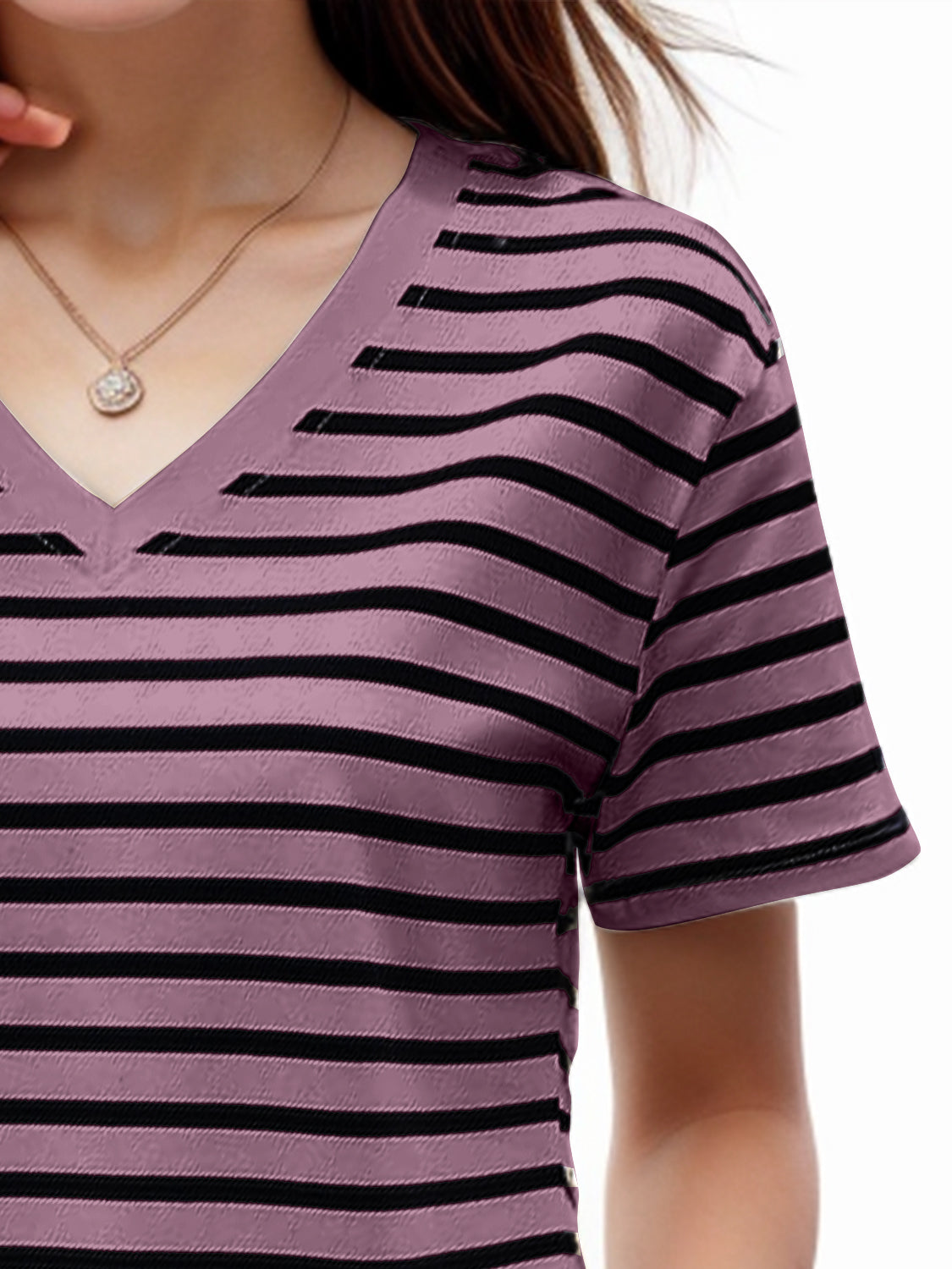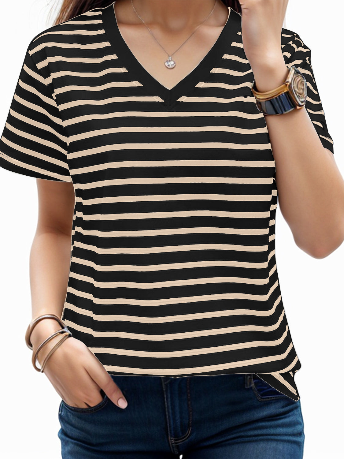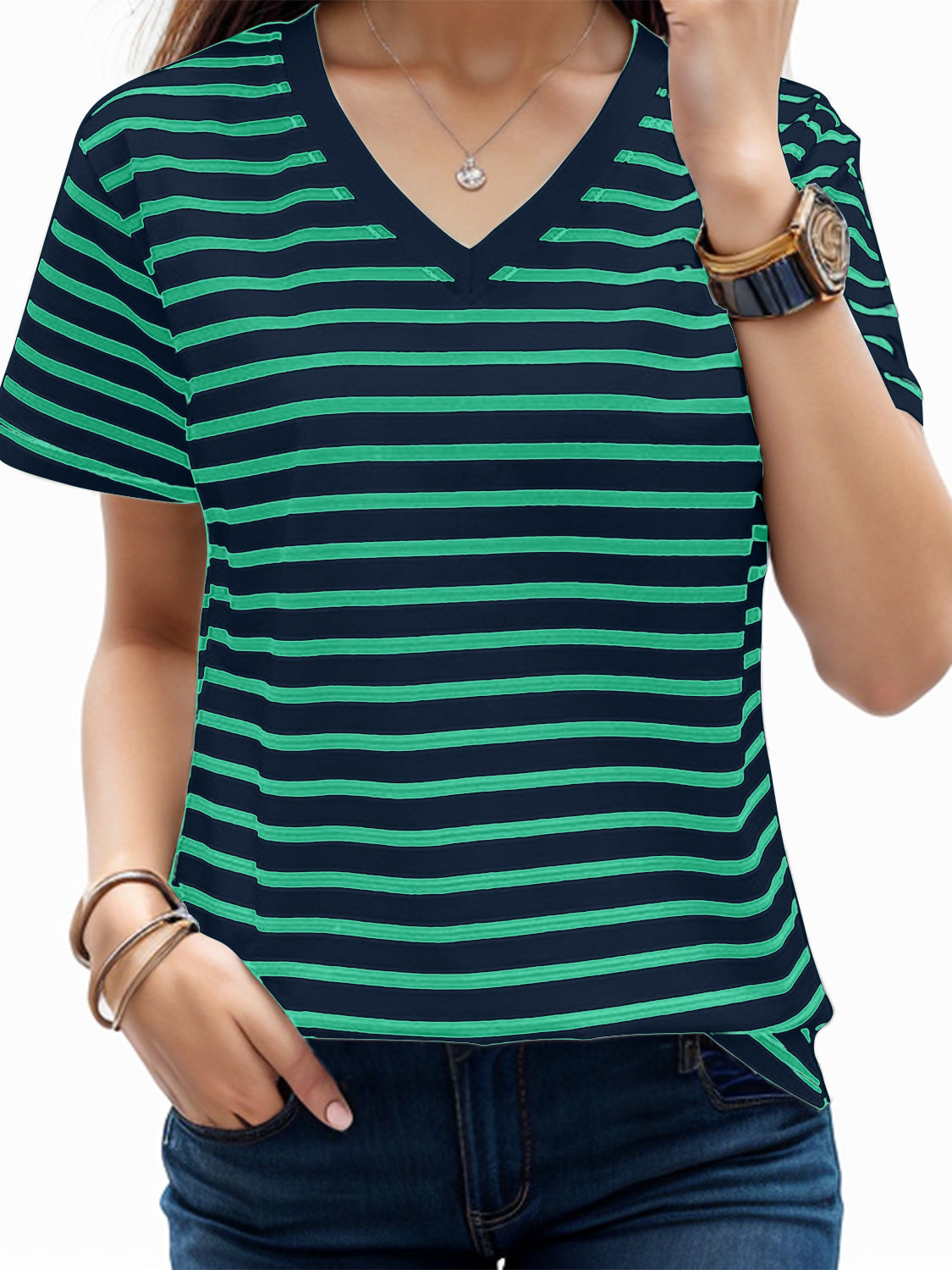 Plus Size Striped V-Neck Short Sleeve T-Shirt
