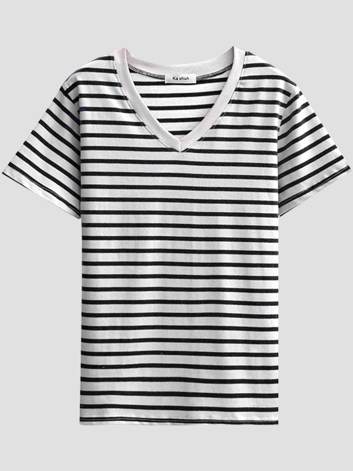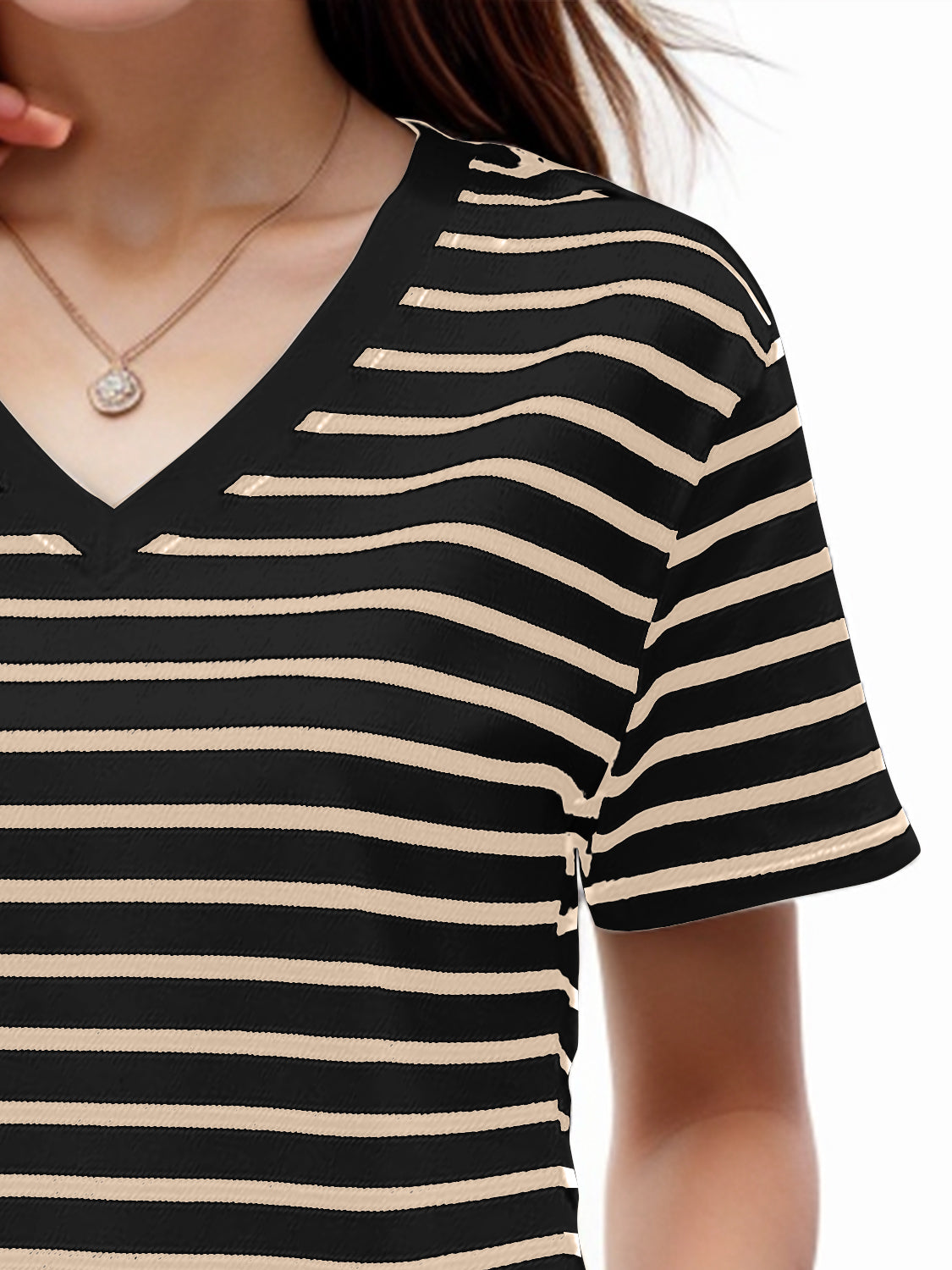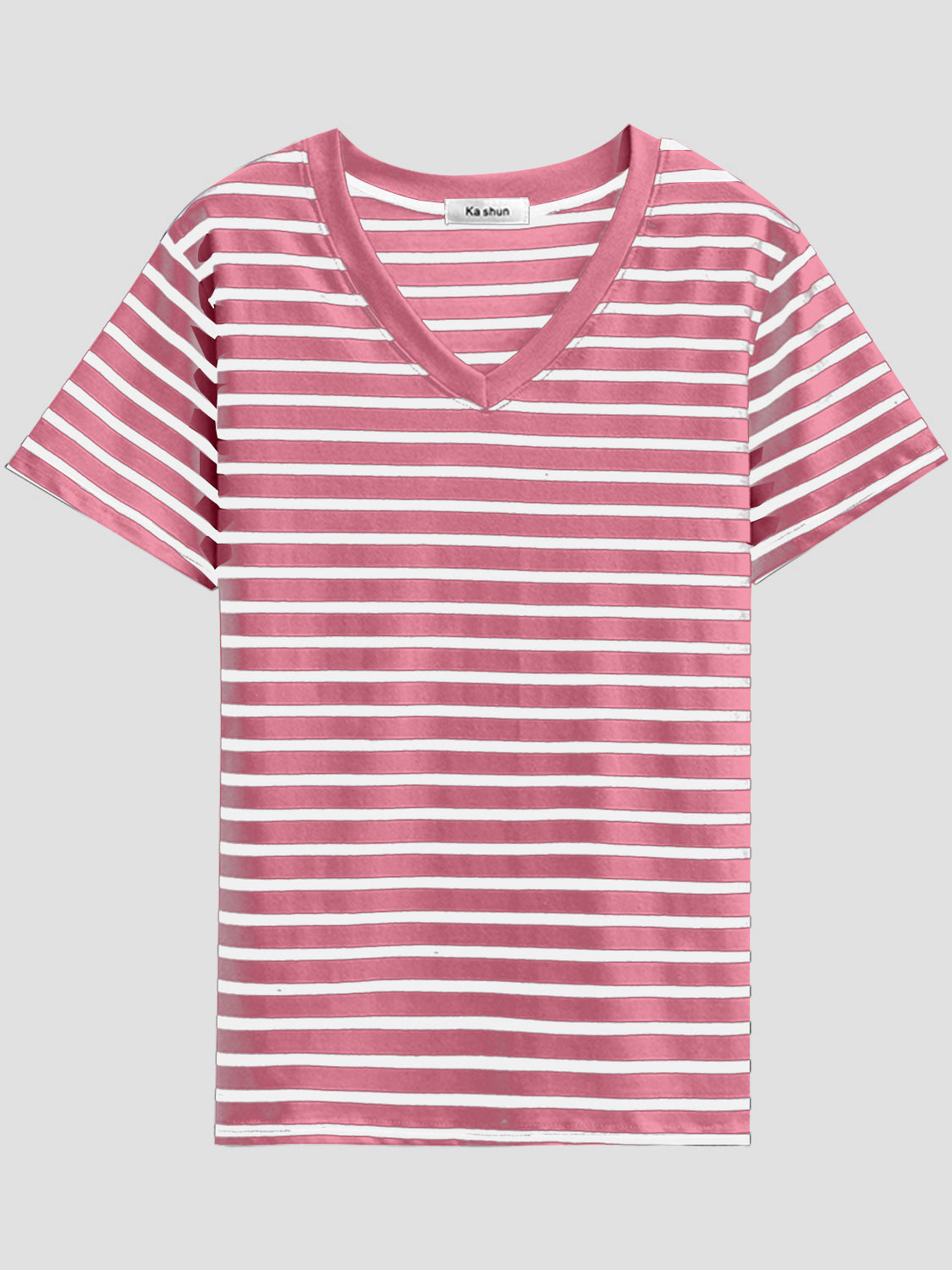Plus Size Striped V-Neck Short Sleeve T-Shirt
