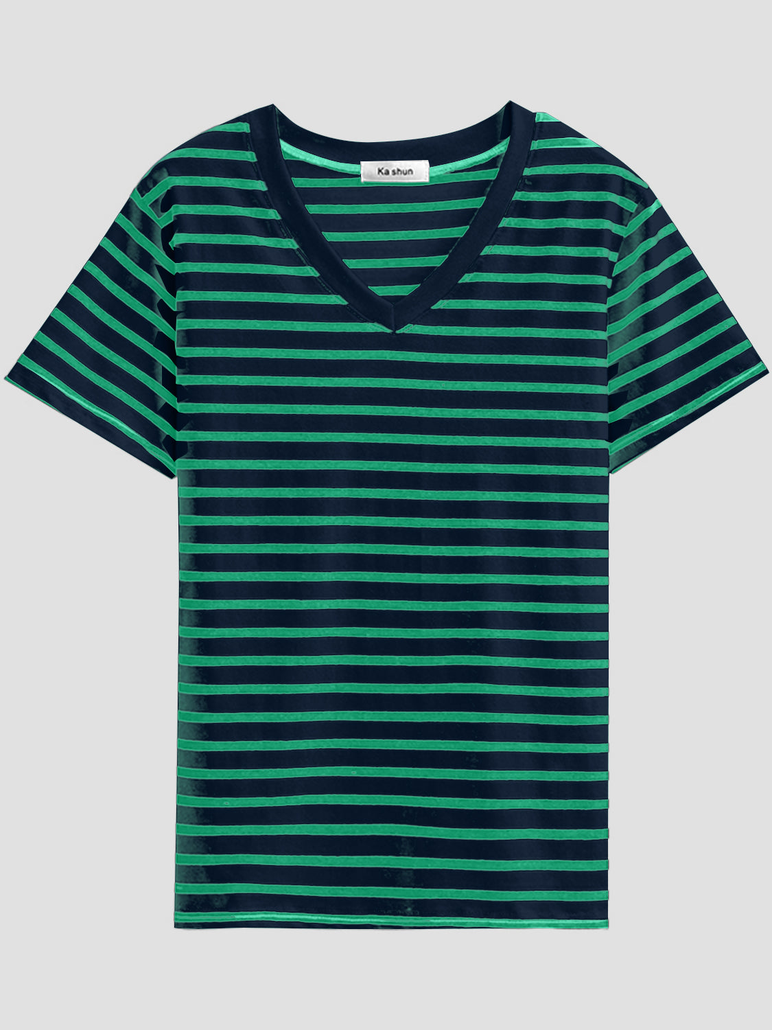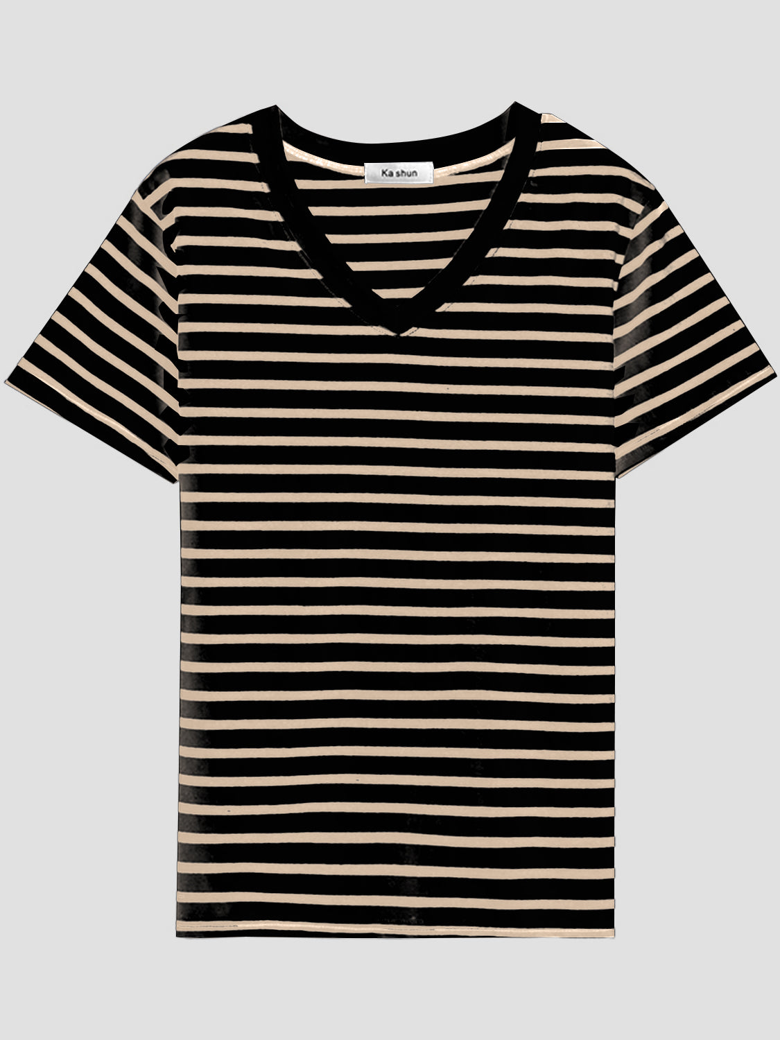 • Load image into Gallery viewer, Plus Size Striped V-Neck Short Sleeve T-Shirt