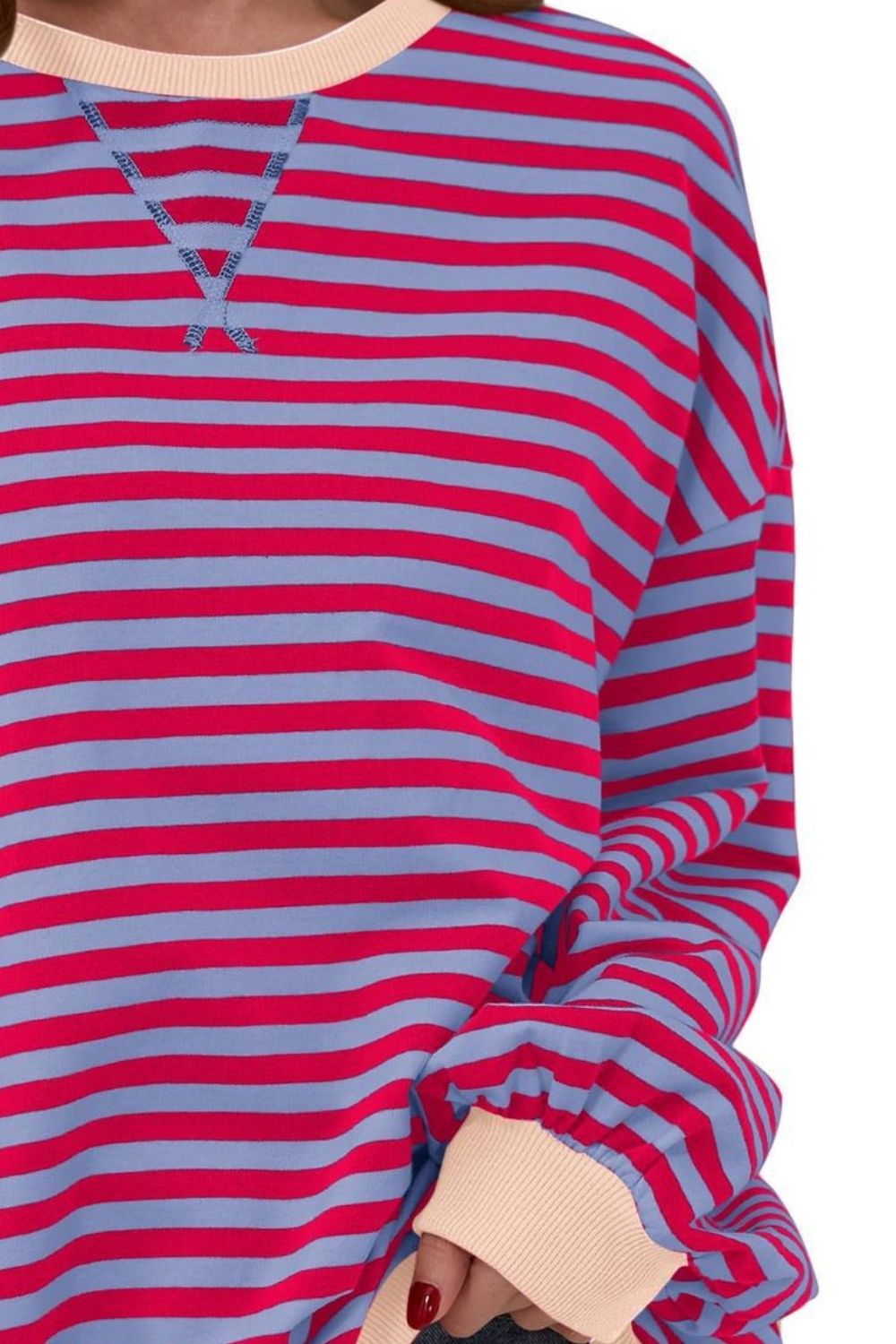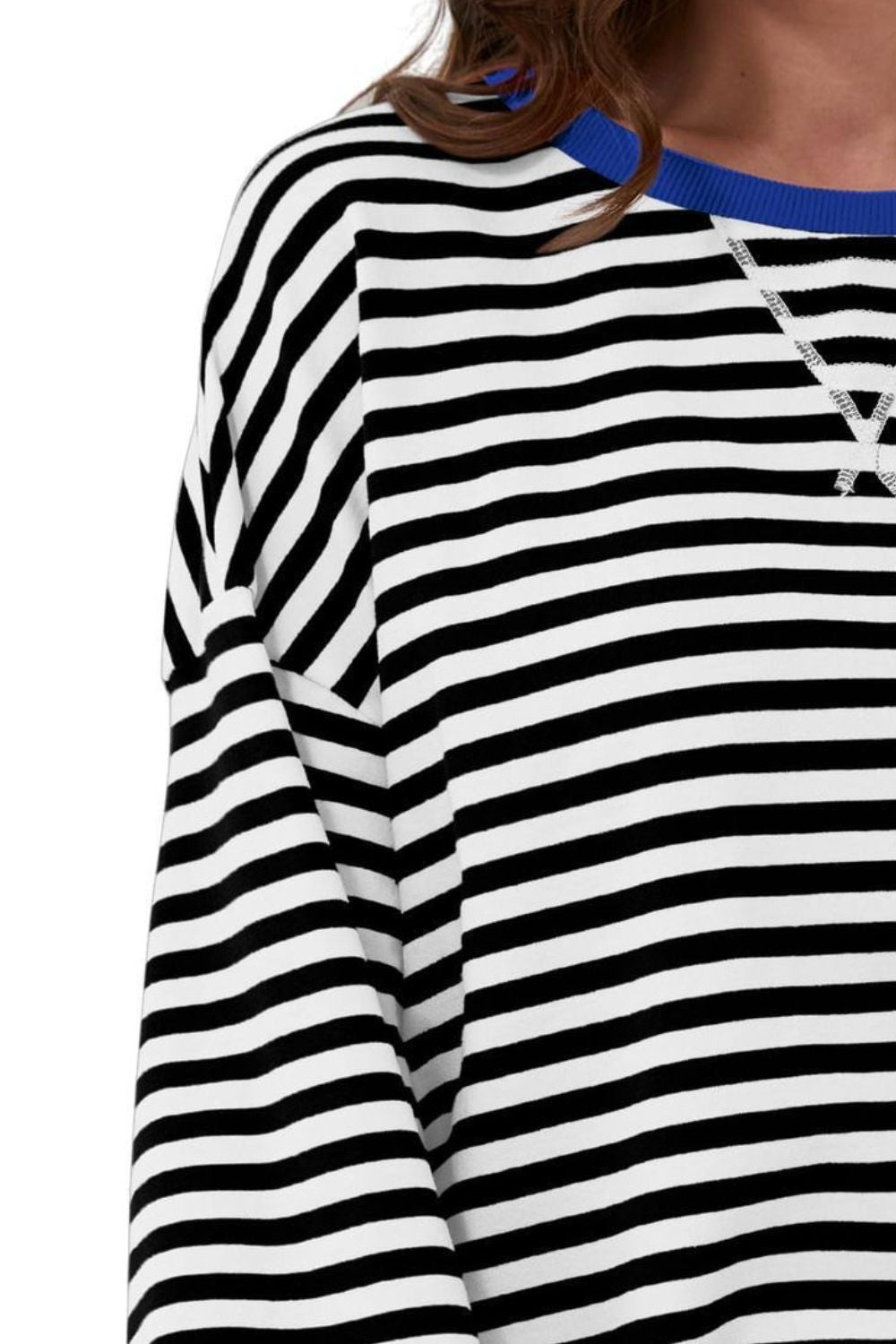 • Load image into Gallery viewer, Striped Round Neck Long Sleeve Sweatshirt