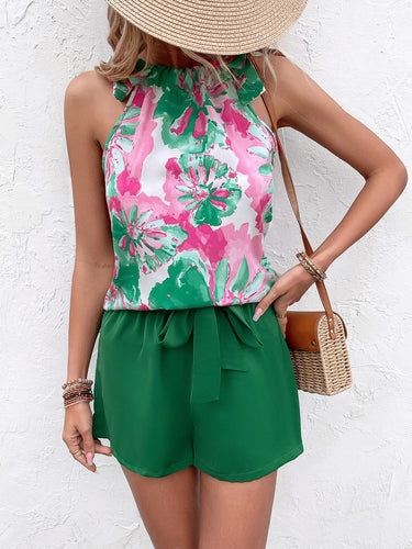 Floral Tied Round Neck Tank