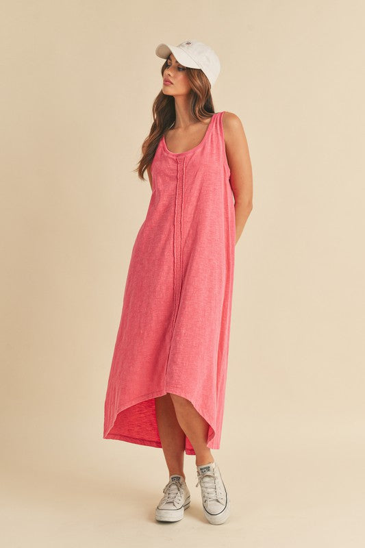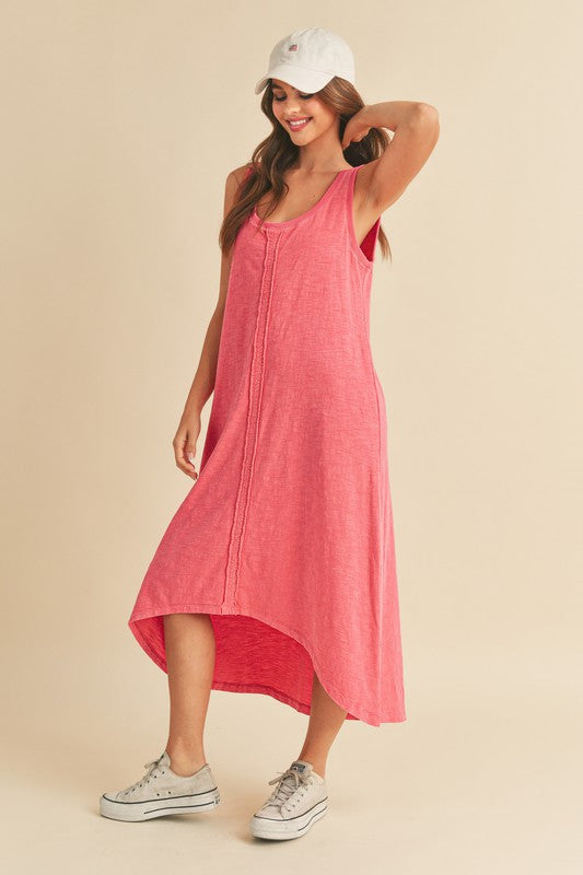 The High-Low Hem Scoop Neck Midi Tank Dress is a versatile and stylish piece that combines a trendy high-low hemline with a classic scoop neckline. This dress offers a modern and flattering silhouette that is perfect for various occasions. The midi length provides a chic and sophisticated look, while the tank style is comfortable and easy to wear. Pair this dress with sandals or sneakers for a casual day out, or dress it up with heels and accessories for a more elevated ensemble.
