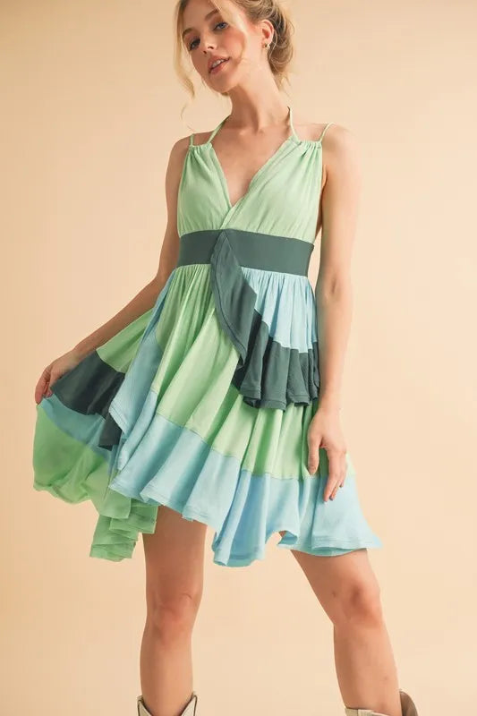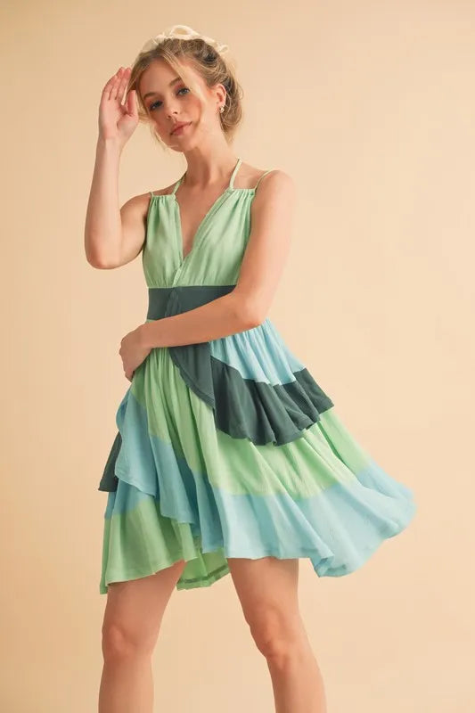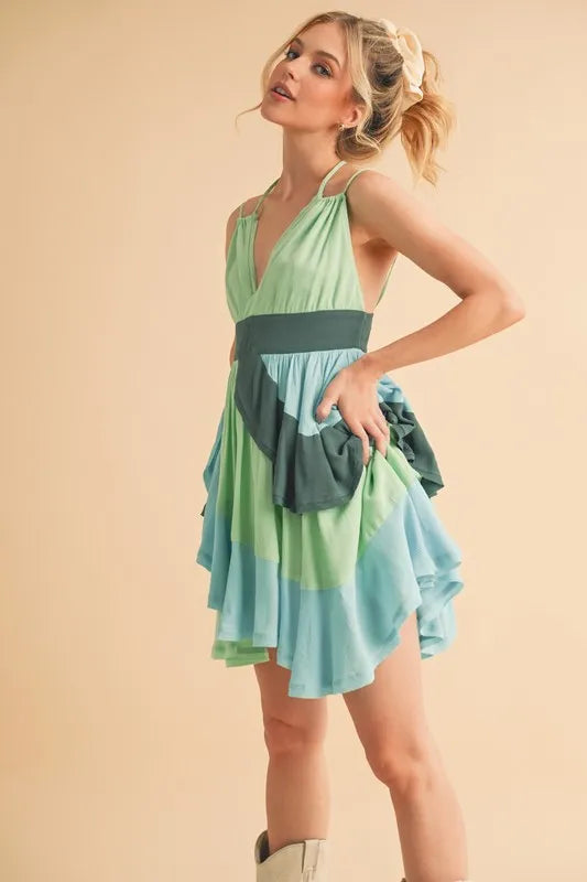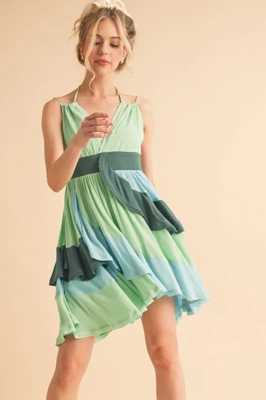 Aemi+Co Ruffled Color Block Sleeveless Mini Dress